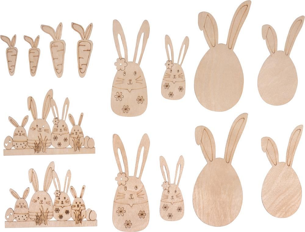 Rayher Furnierholz Osterhasen & Freunde, 14 Stück