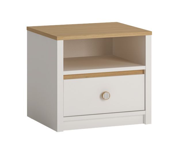 Furnival Nachttisch Globo mit Schublade Weiß Eiche