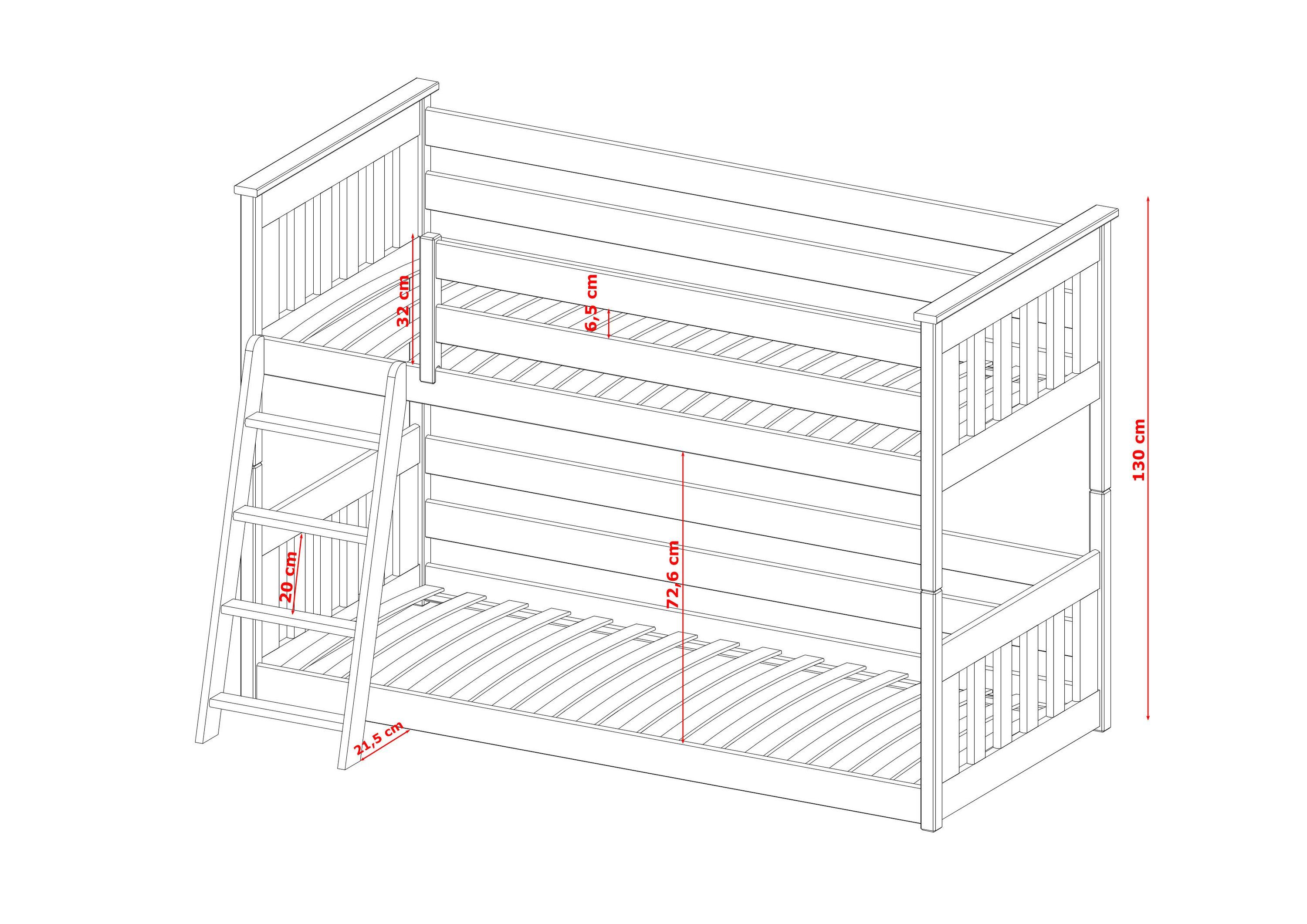 Furnlux Classic Etagenbett KEVIN - Grau - 88 x 188 x 130 cm