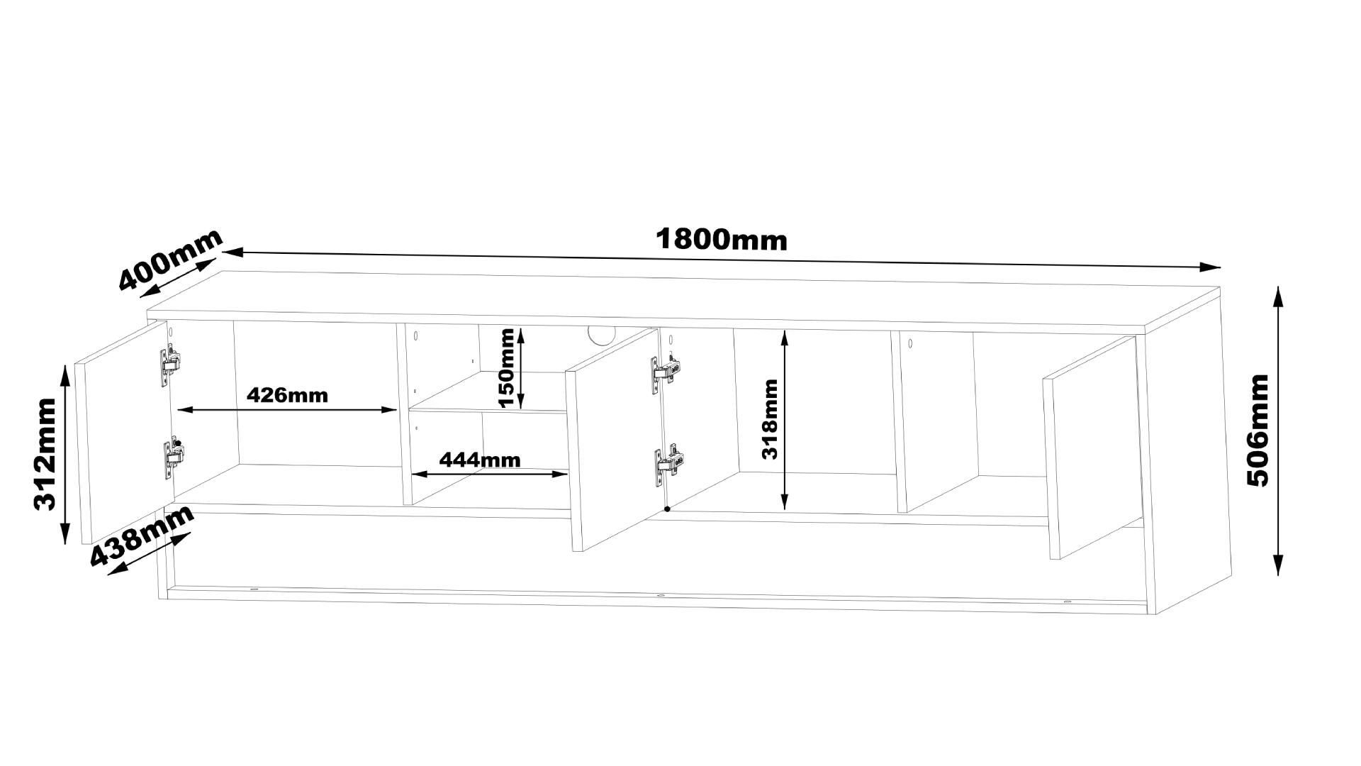 Furnlux Classic Tv Lowboard VISION - Schwarz - 180 x 40 x 50 cm