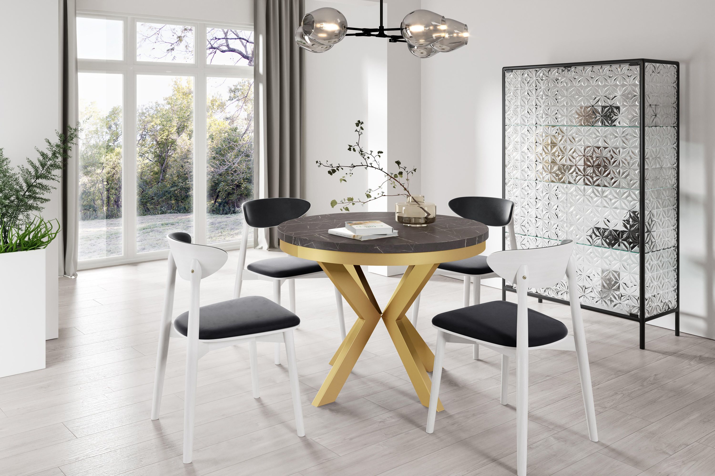 Furnlux Esstisch Edder Schwarz & Gold 90cm