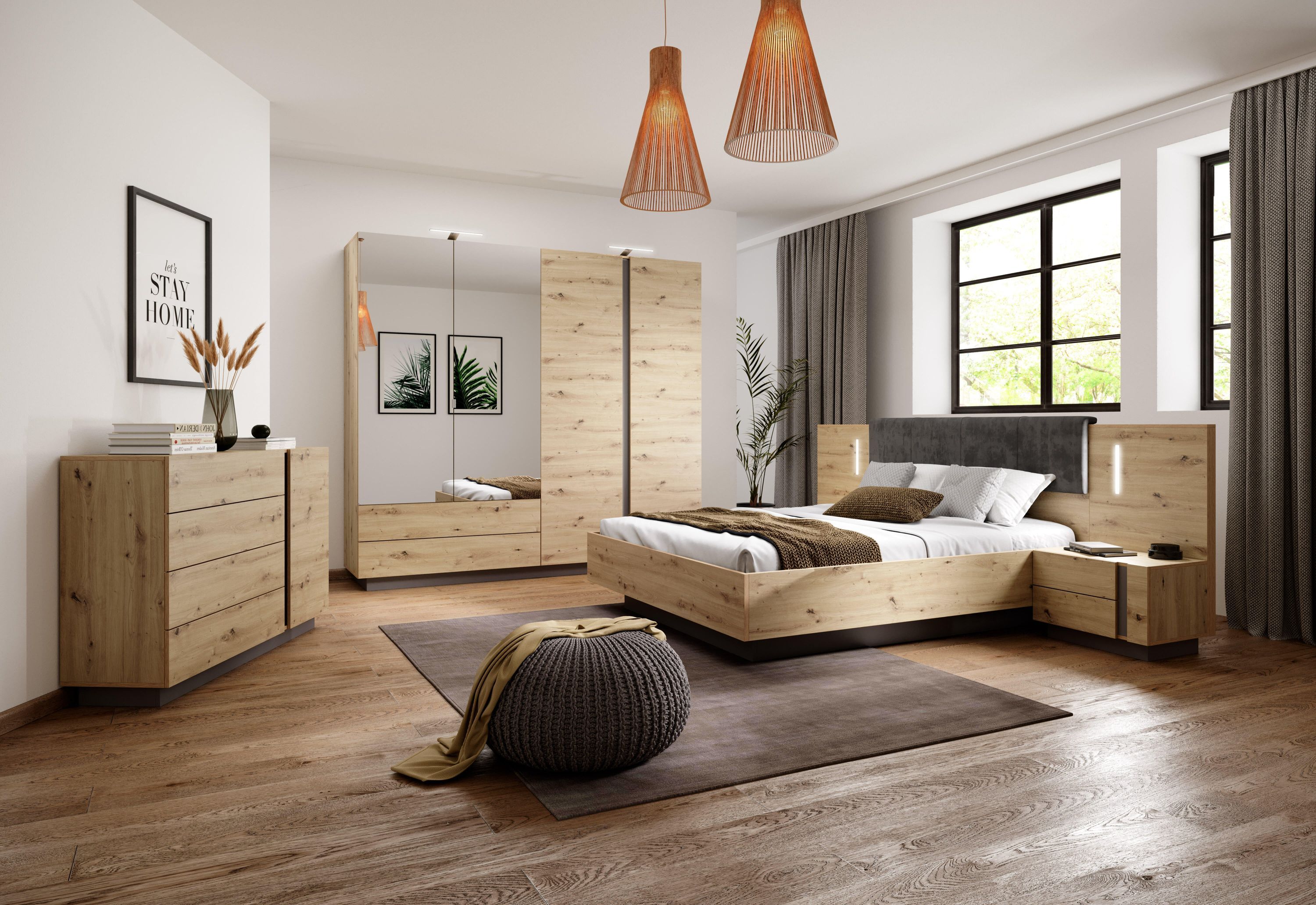 Furnlux Kleiderschrank Arcade Schwarz 220cm