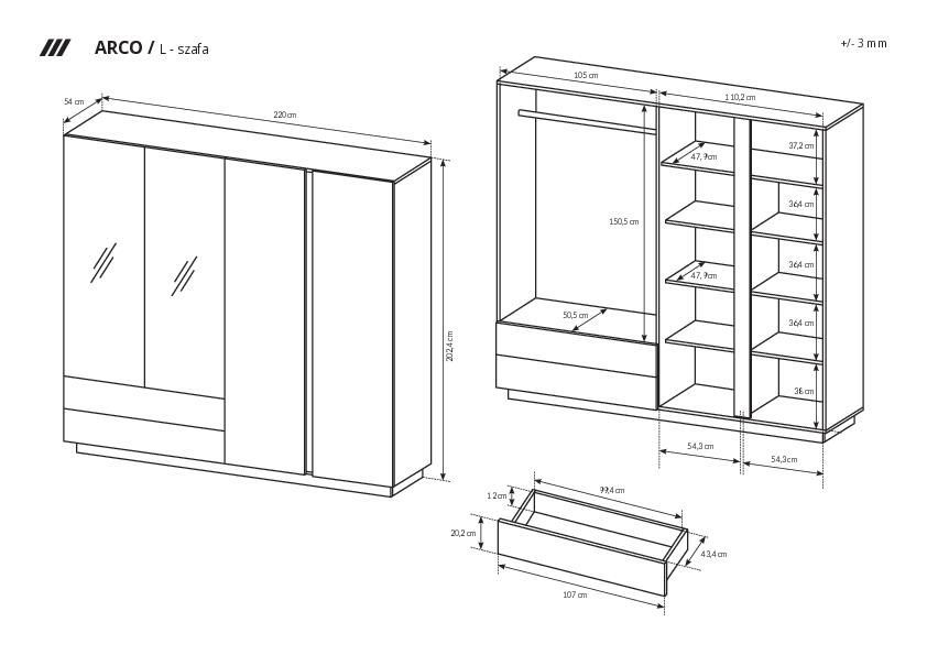 220 x 203 x 54 cm