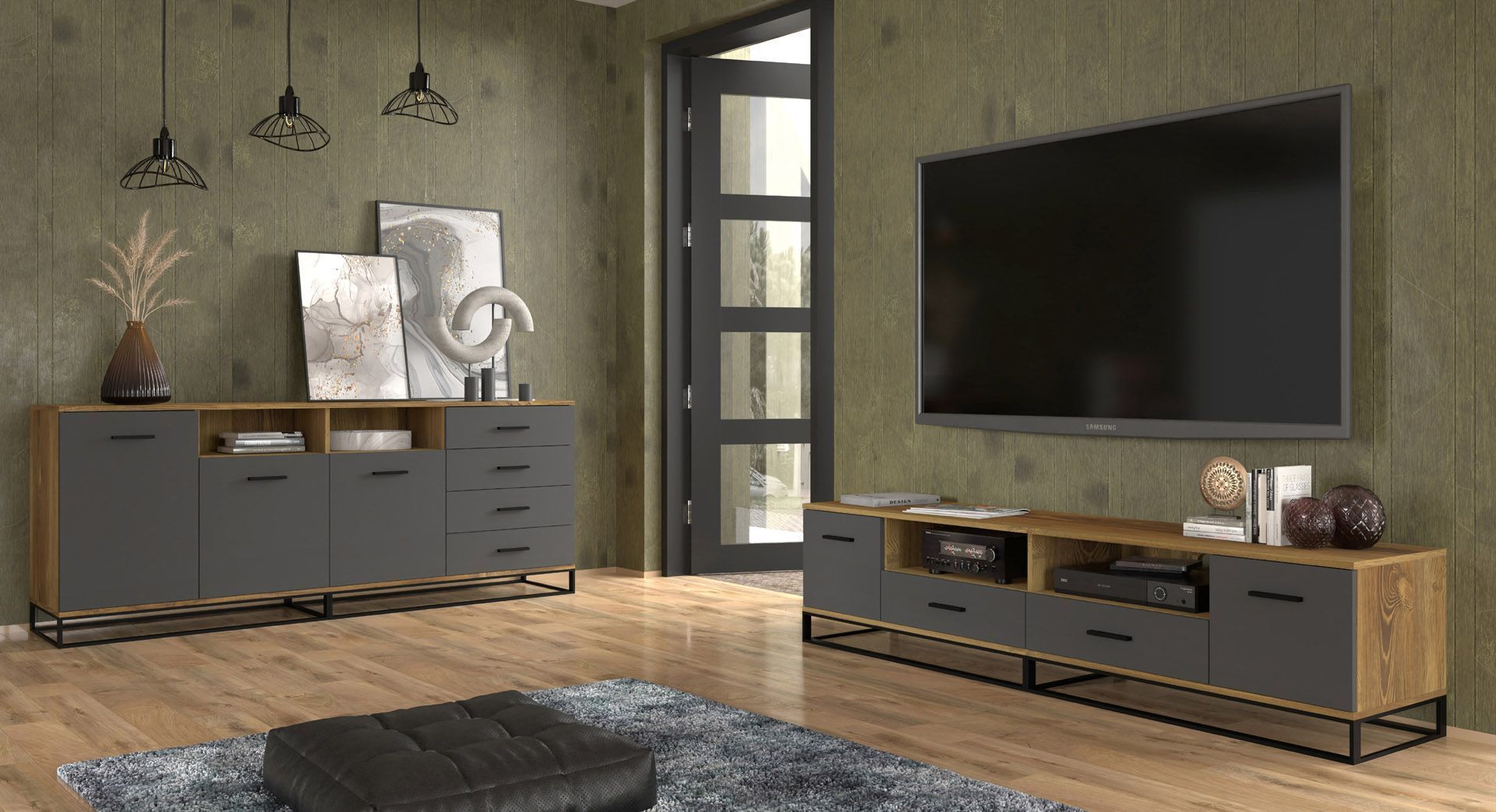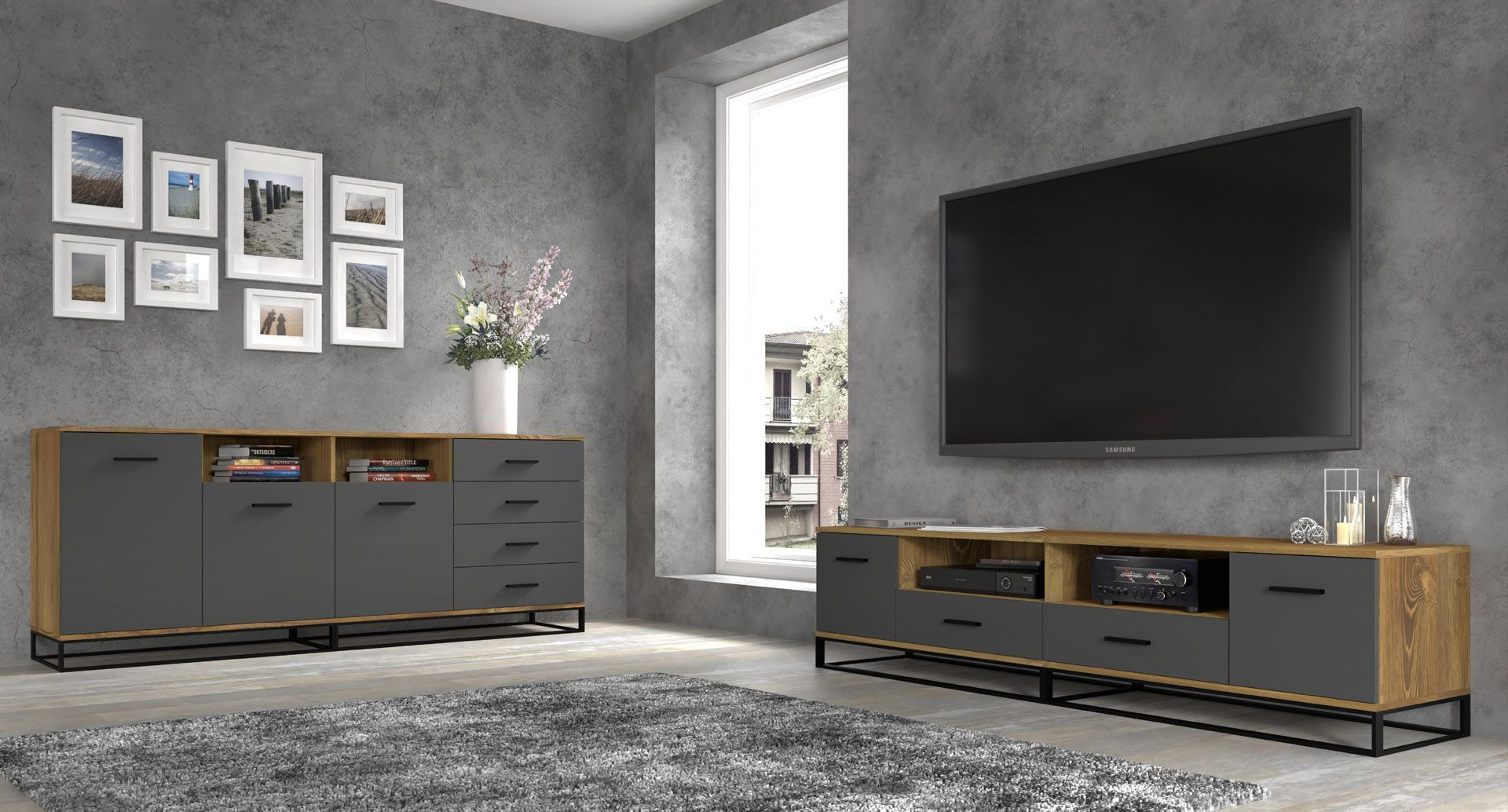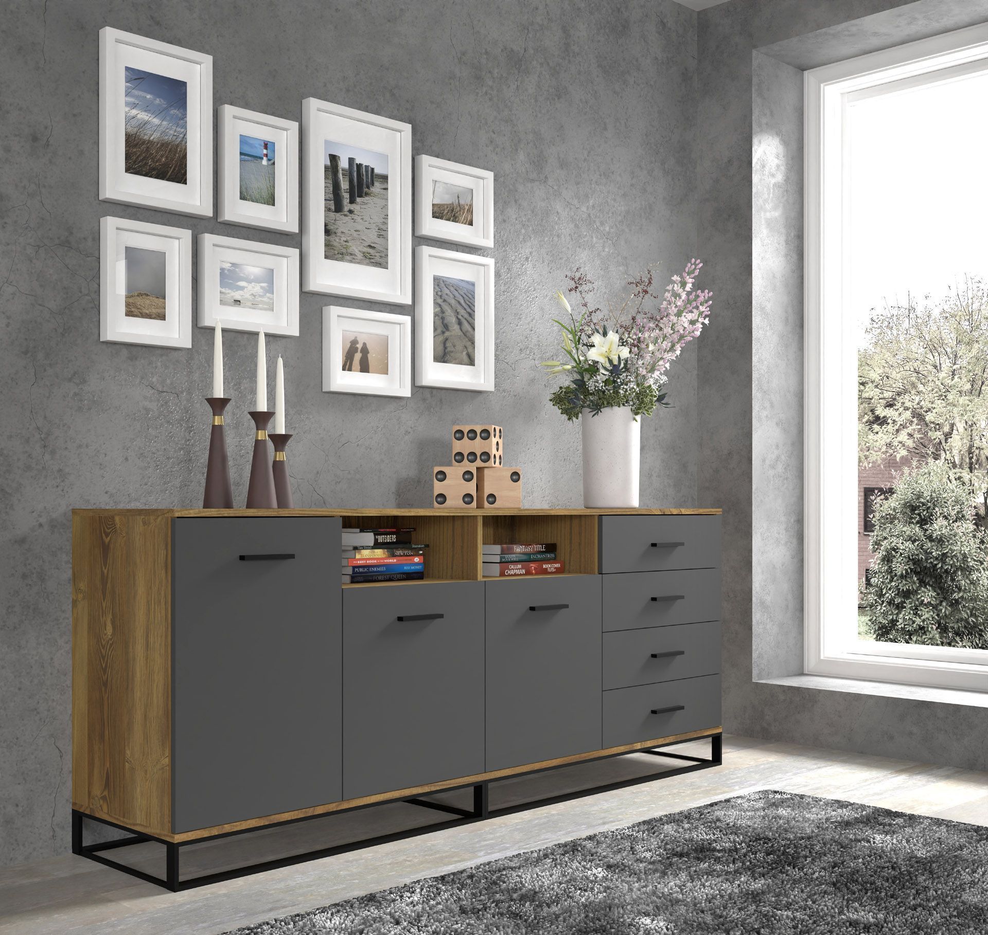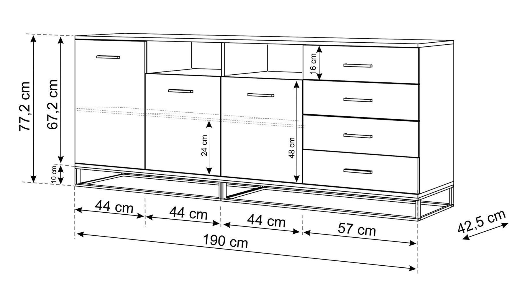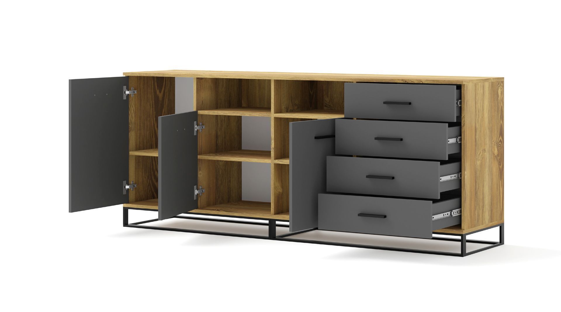 Furnlux Kommode ARSEN - Graphit - 190 x 42 x 77 cm - Stil: Modern