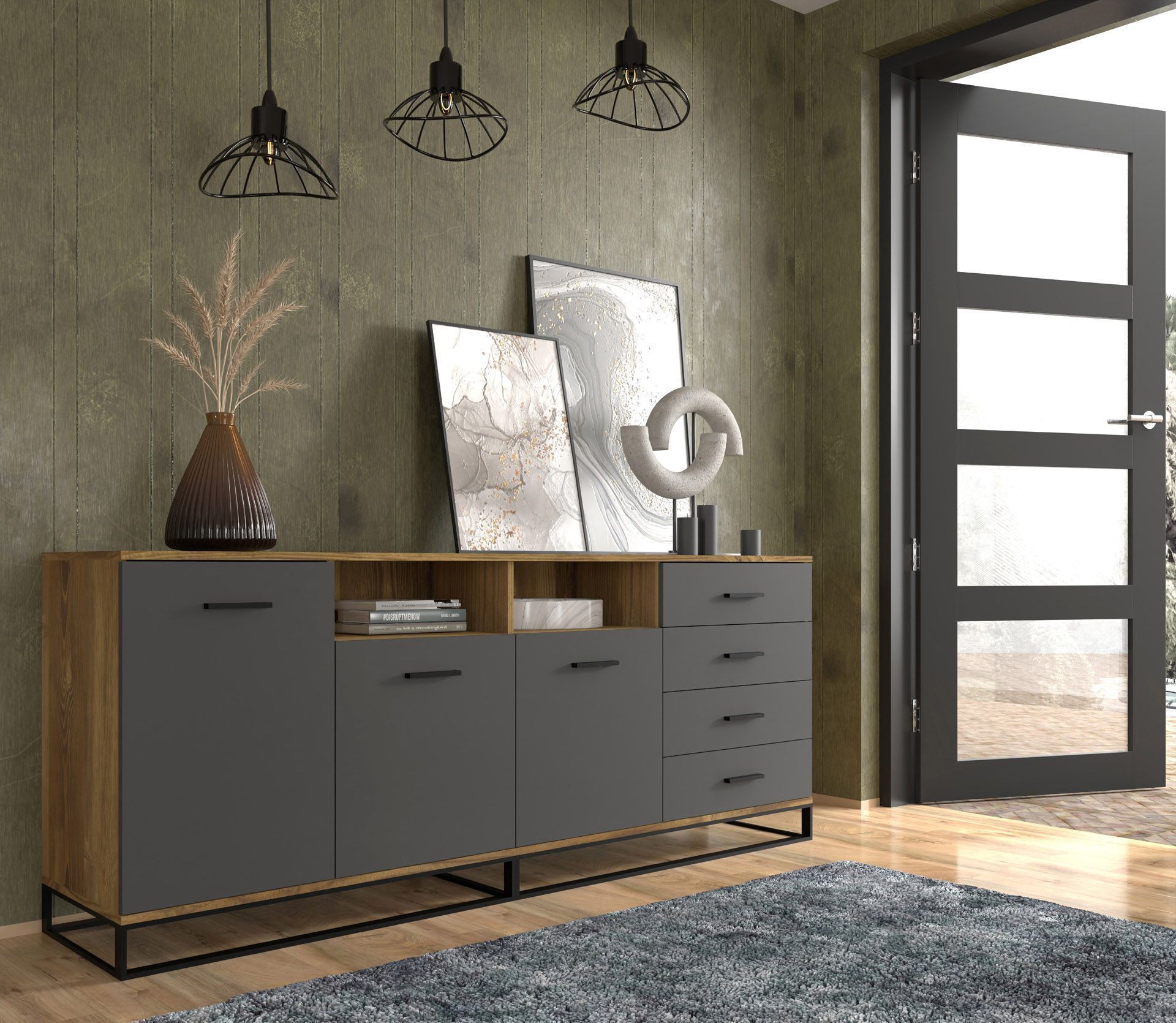 • AX LIVING Trentinis 187 2D3S Schwarze große Kommode 187,1 cm breit