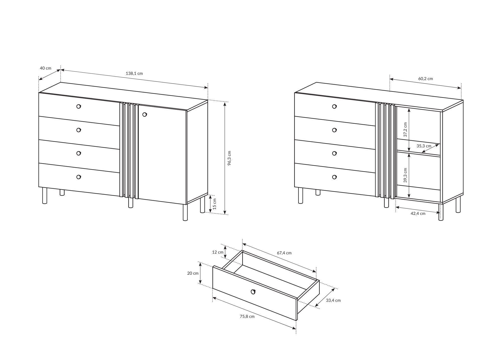 Furnlux Kommode DECO - Beige - 139 x 40 x 97 cm - Stil: Modern