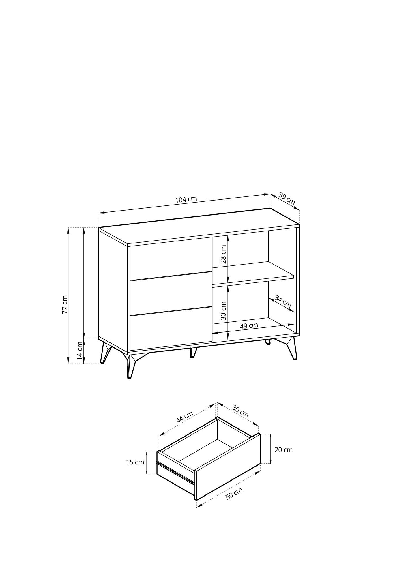 • Furnlux Kommode WILLOW - Schwarz - 104 x 39 x 83 cm - Stil: Modern