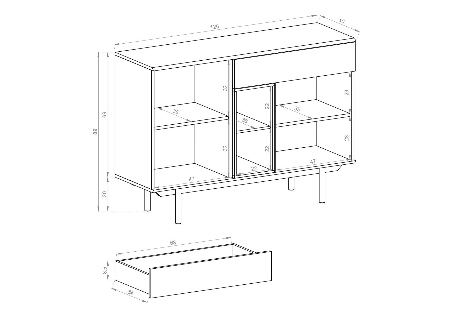 Furnlux Kommode INOX - Grau - 125 x 40 x 89 cm - Stil: Modern