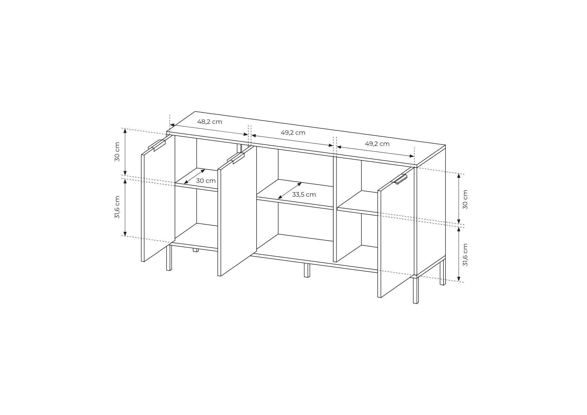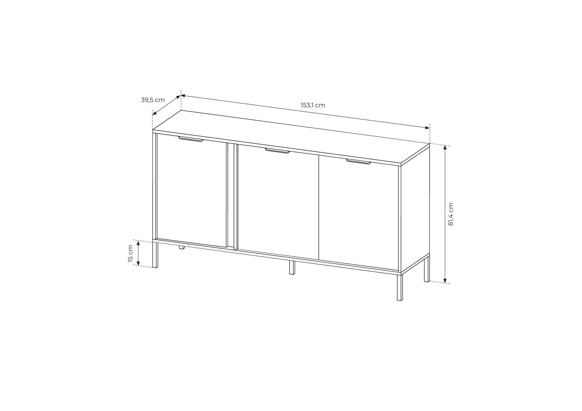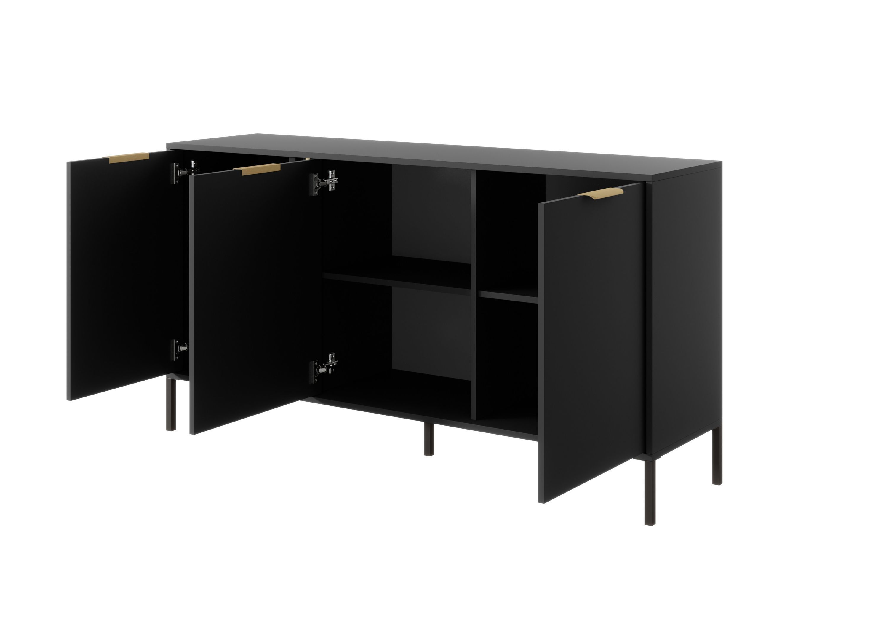 Furnlux Kommode LARS - Schwarz - 154 x 40 x 82 cm - Stil: Modern