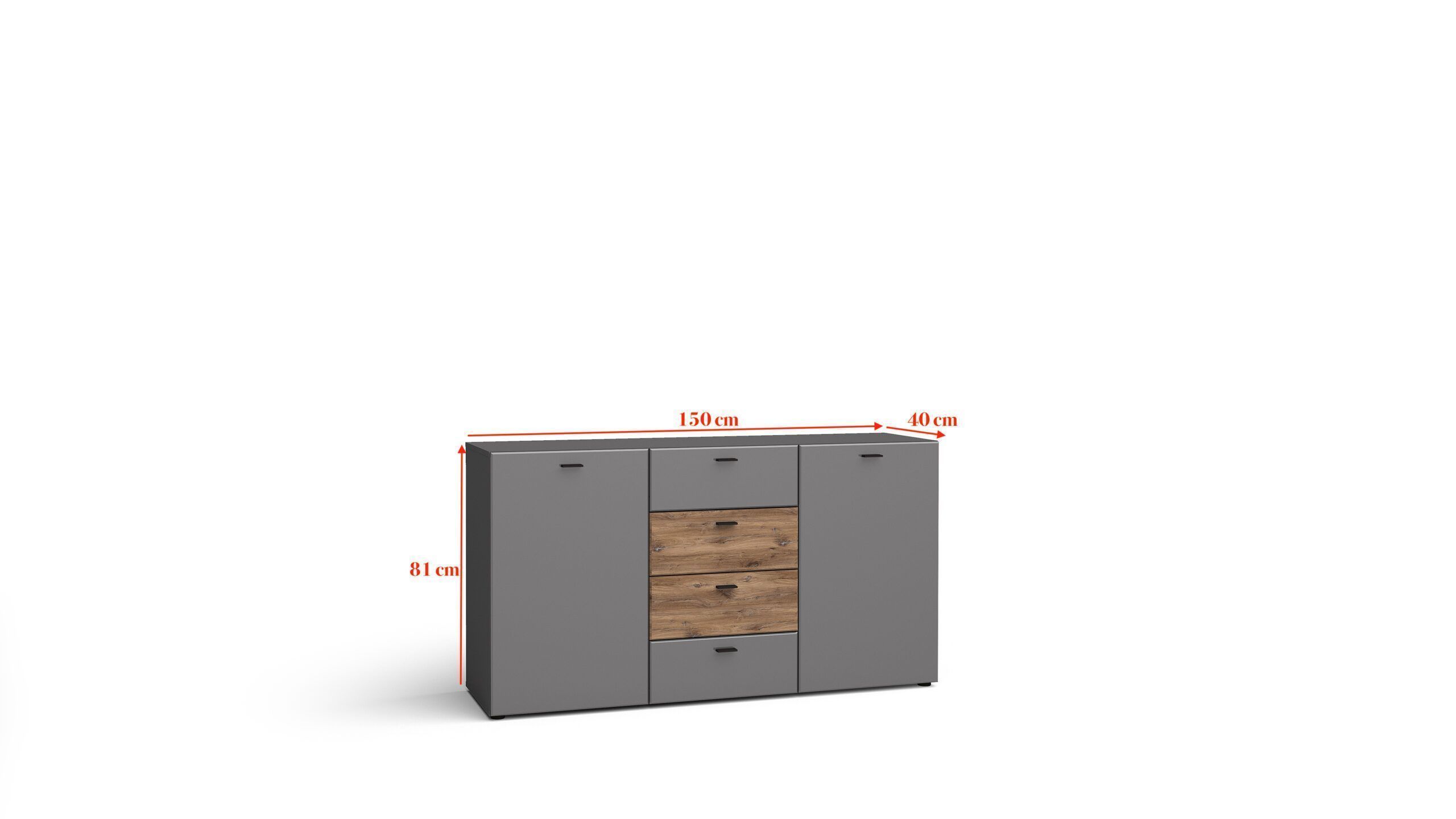 Furnlux Kommode MILA FURNI - Beige - 150 x 40 x 81 cm - Stil: Modern