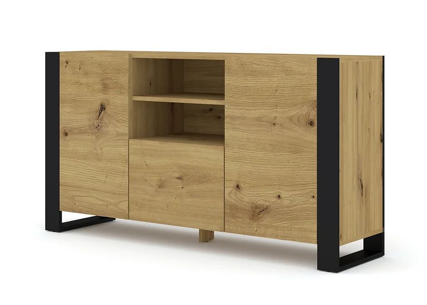 Selsey Bemmi - Sideboard Kommode 3-trig, Schwarz, 150 cm