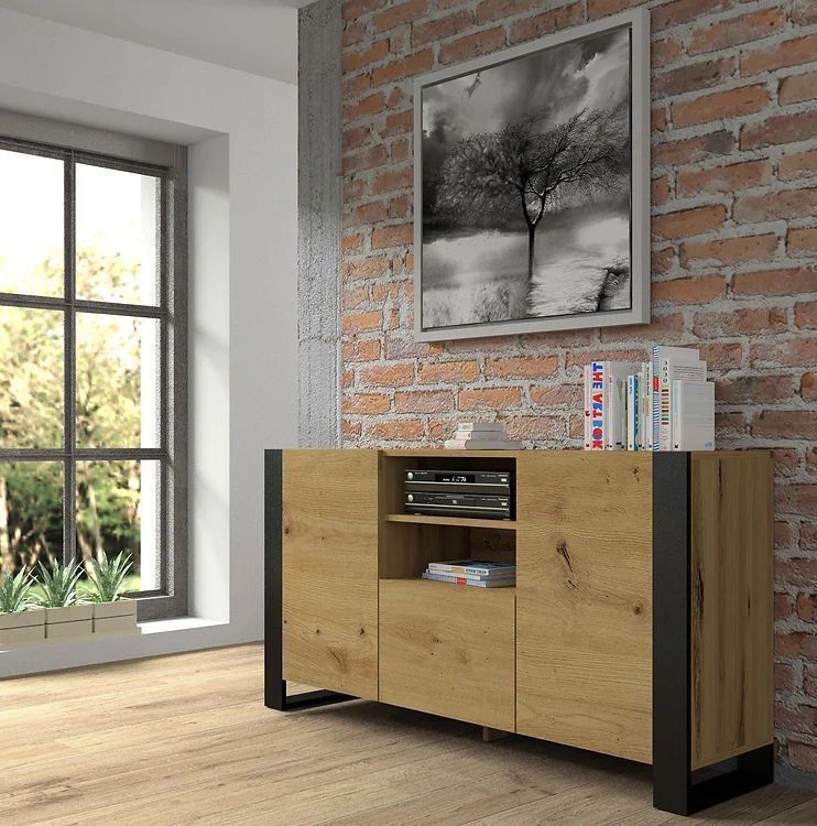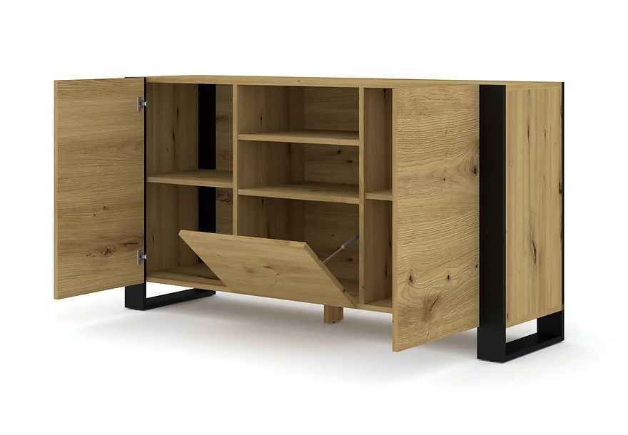 • Kommode Tireno 2D3SZ Sideboard mit zwei Drehtüren und drei Schubladen M24