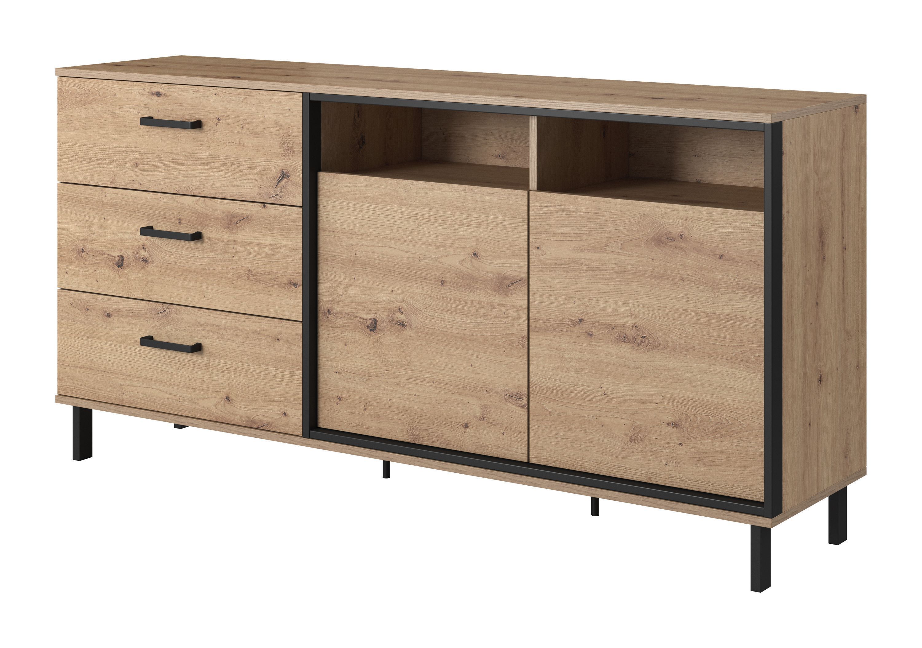 Selsey Bemmi - Sideboard Kommode 3-trig, Schwarz, 150 cm