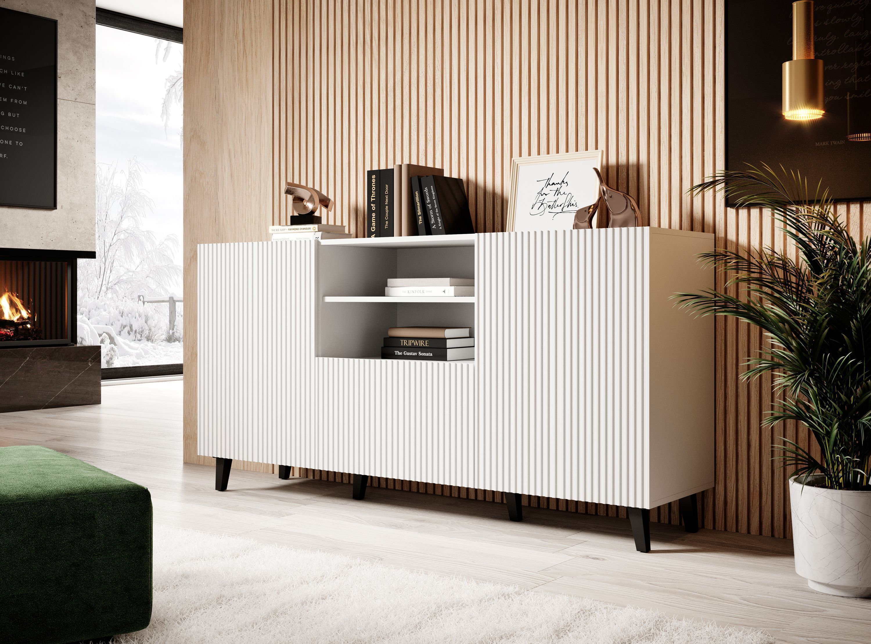 Furnlux Kommode PAFOS - Weiß - 150 x 40 x 82 cm - Stil: Modern