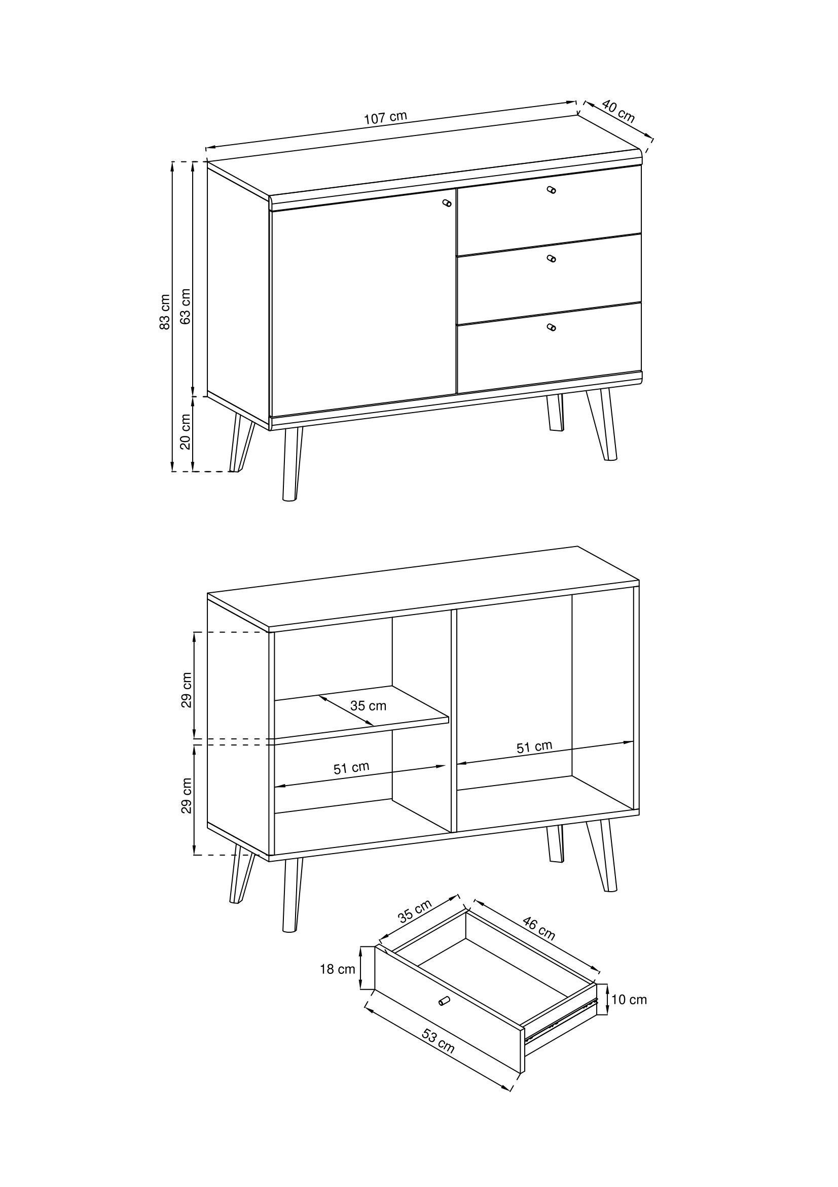 Furnlux Kommode PRIMO - Beige - 107 x 40 x 83 cm - Stil: Modern