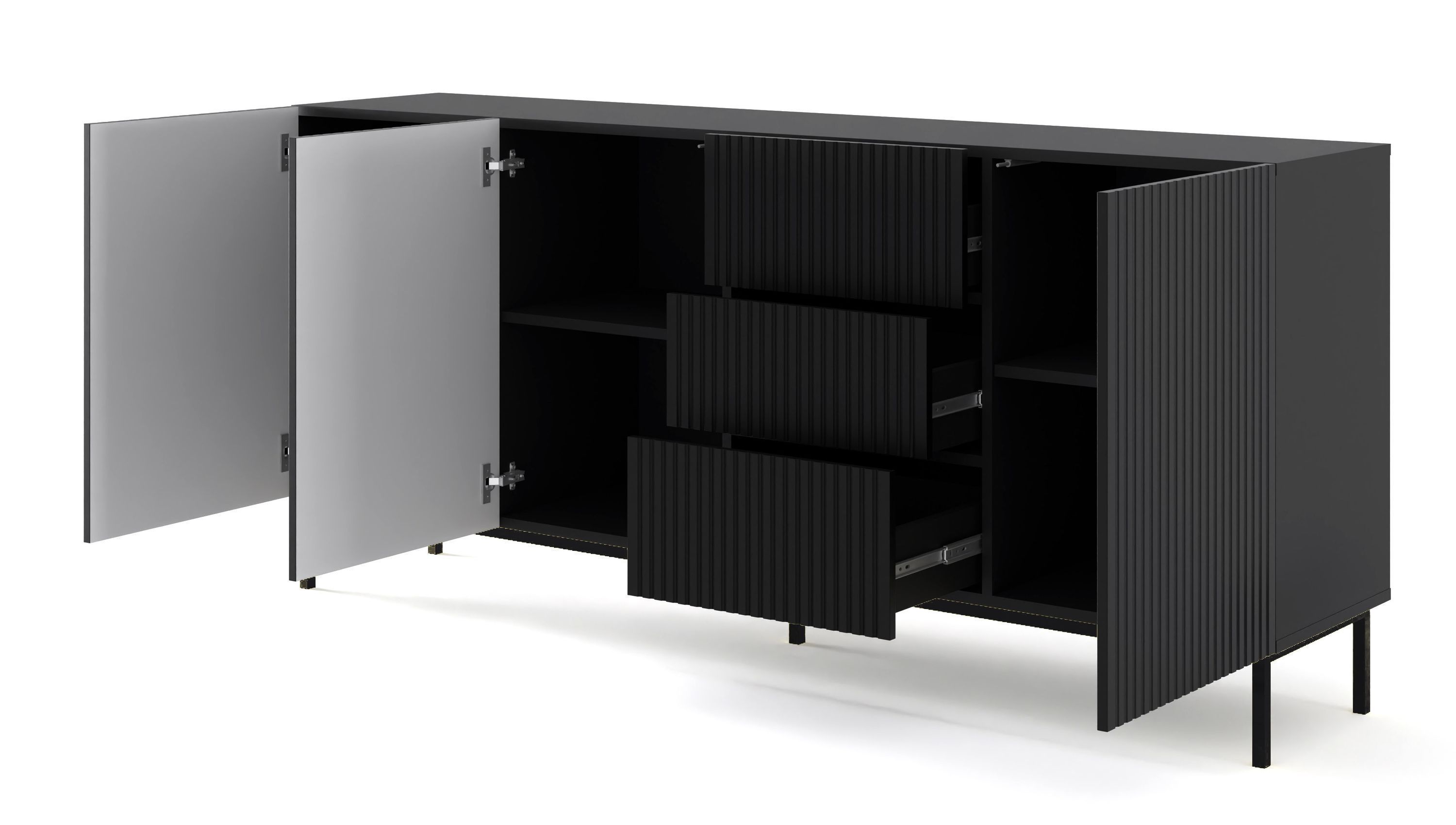 Furnlux Kommode Ravenna B - Schwarz - 200 x 42 x 89 cm - Stil: Modern