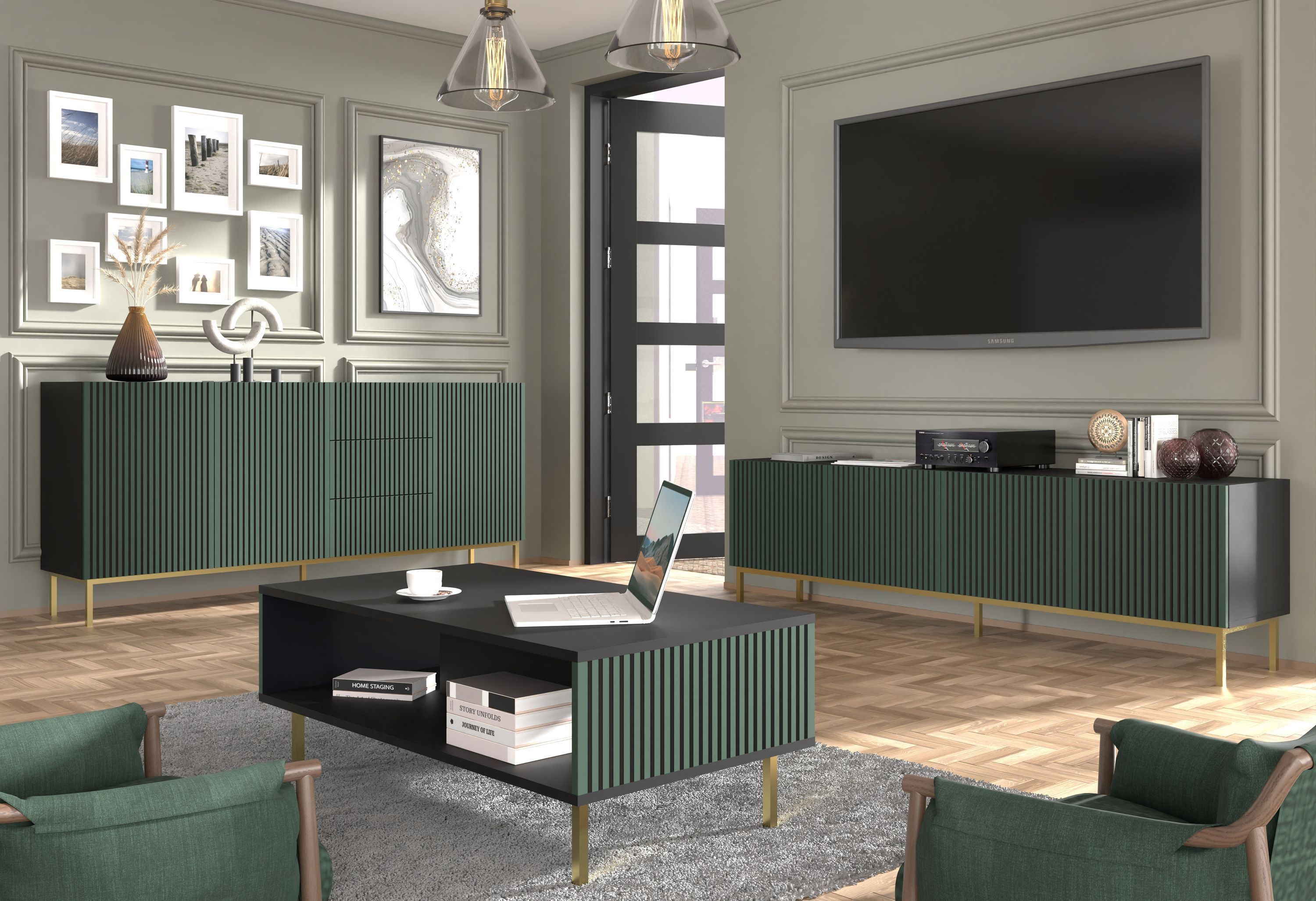 Furnlux Kommode Ravenna F - Schwarz - 200 x 42 x 87 cm - Stil: Modern