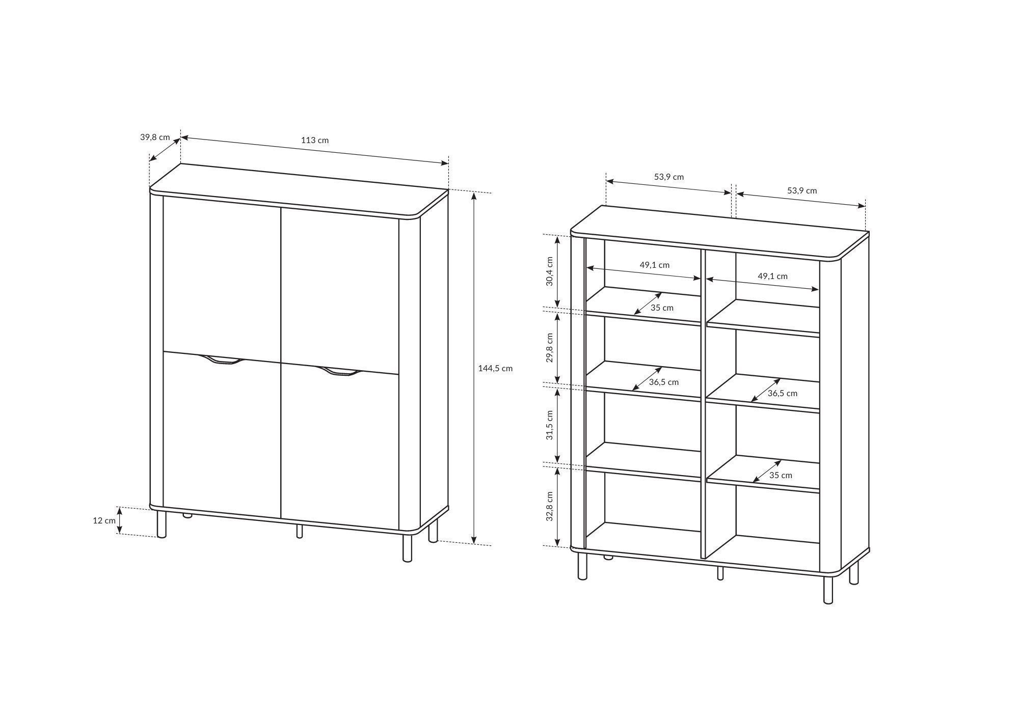 Furnlux Kommode SANTI - Beige - 113 x 40 x 145 cm - Stil: Modern