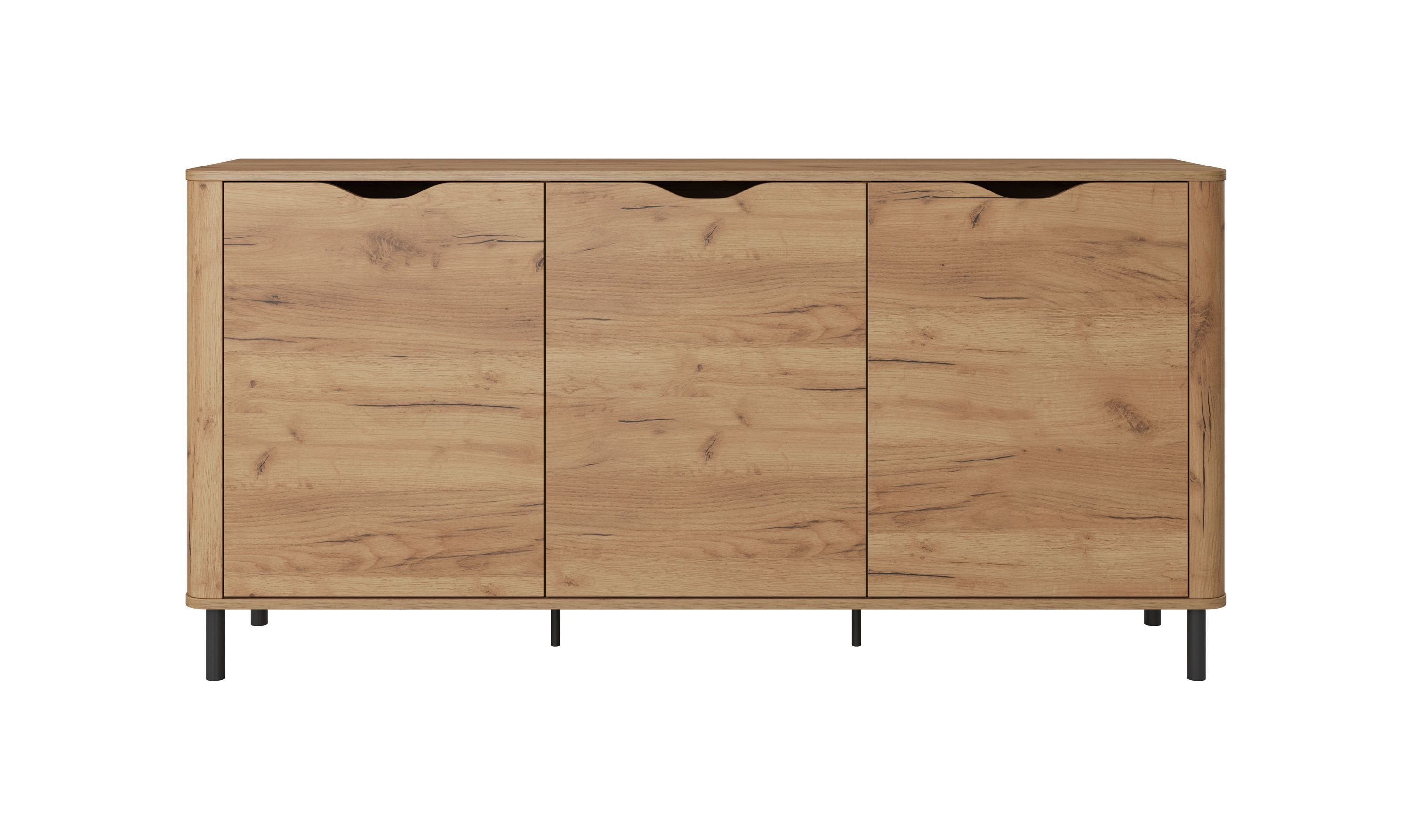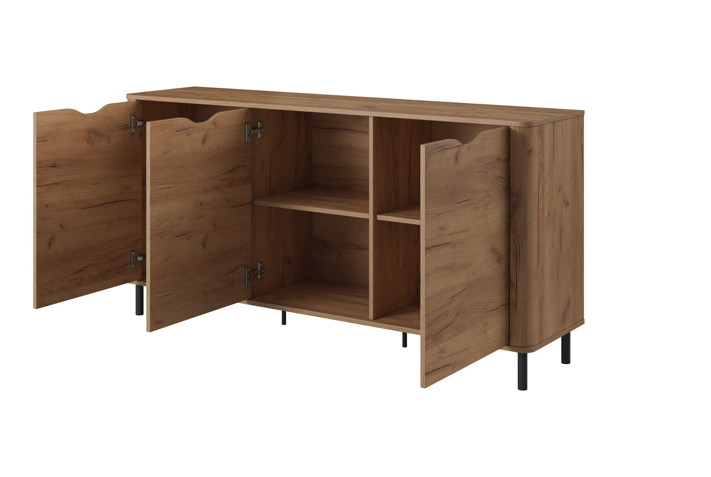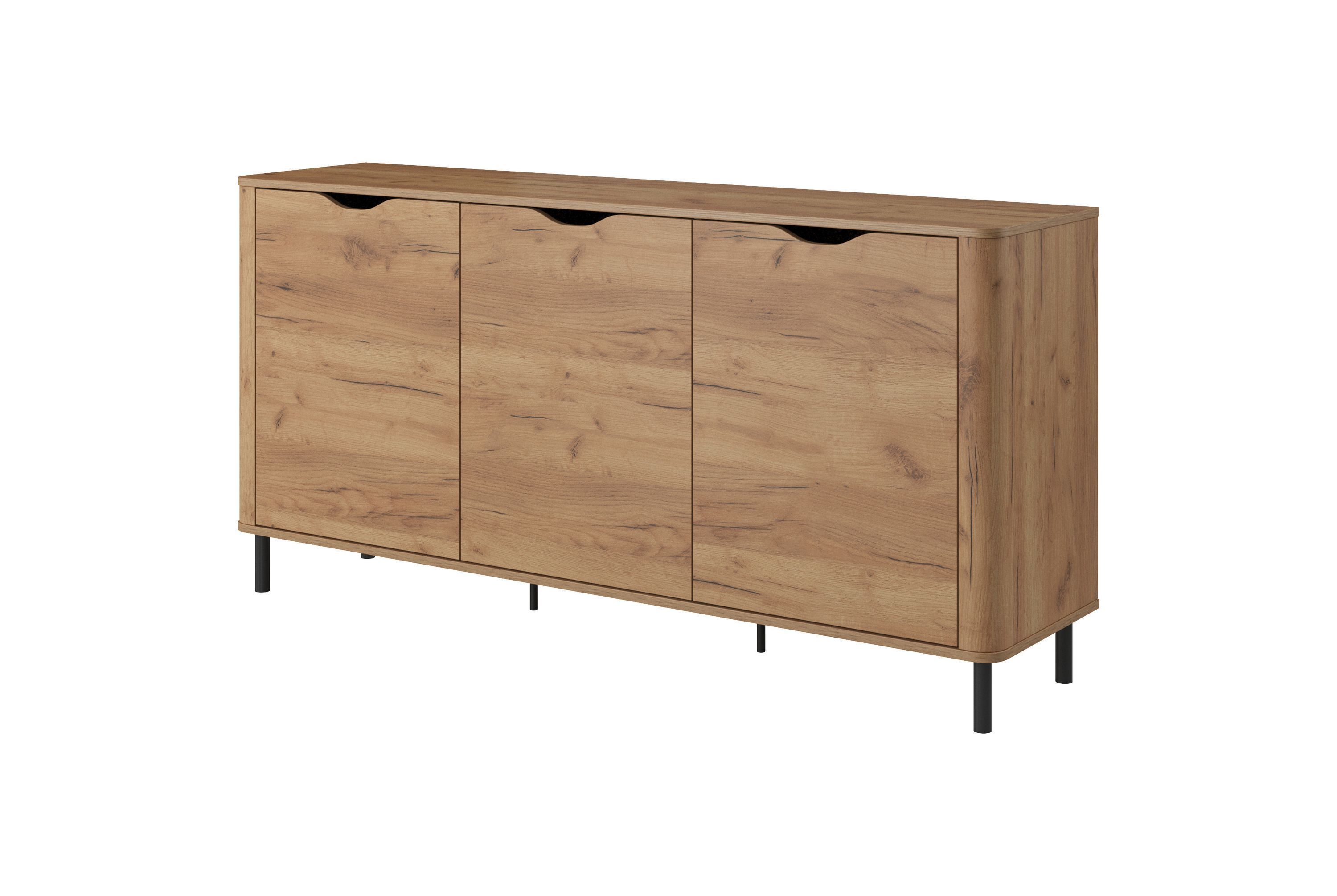 • Kommode Santi C Wohnzimmerschrank mit 3 Türen Sideboard 165 cm breit Craft Eiche gold