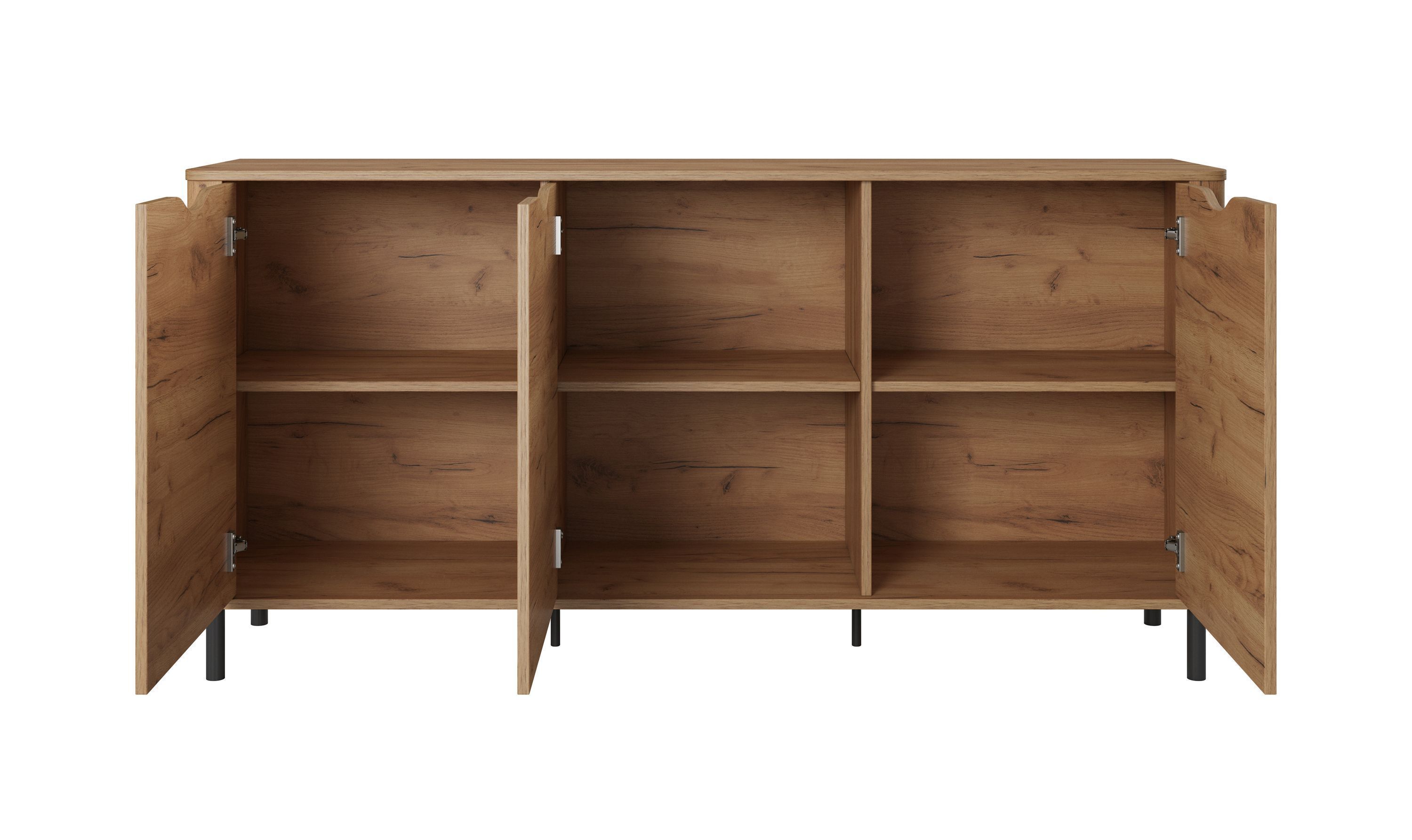 • Kommode 165 cm Santi D Sideboard mit 2 Türen 4 SchubladenCraft Eiche gold