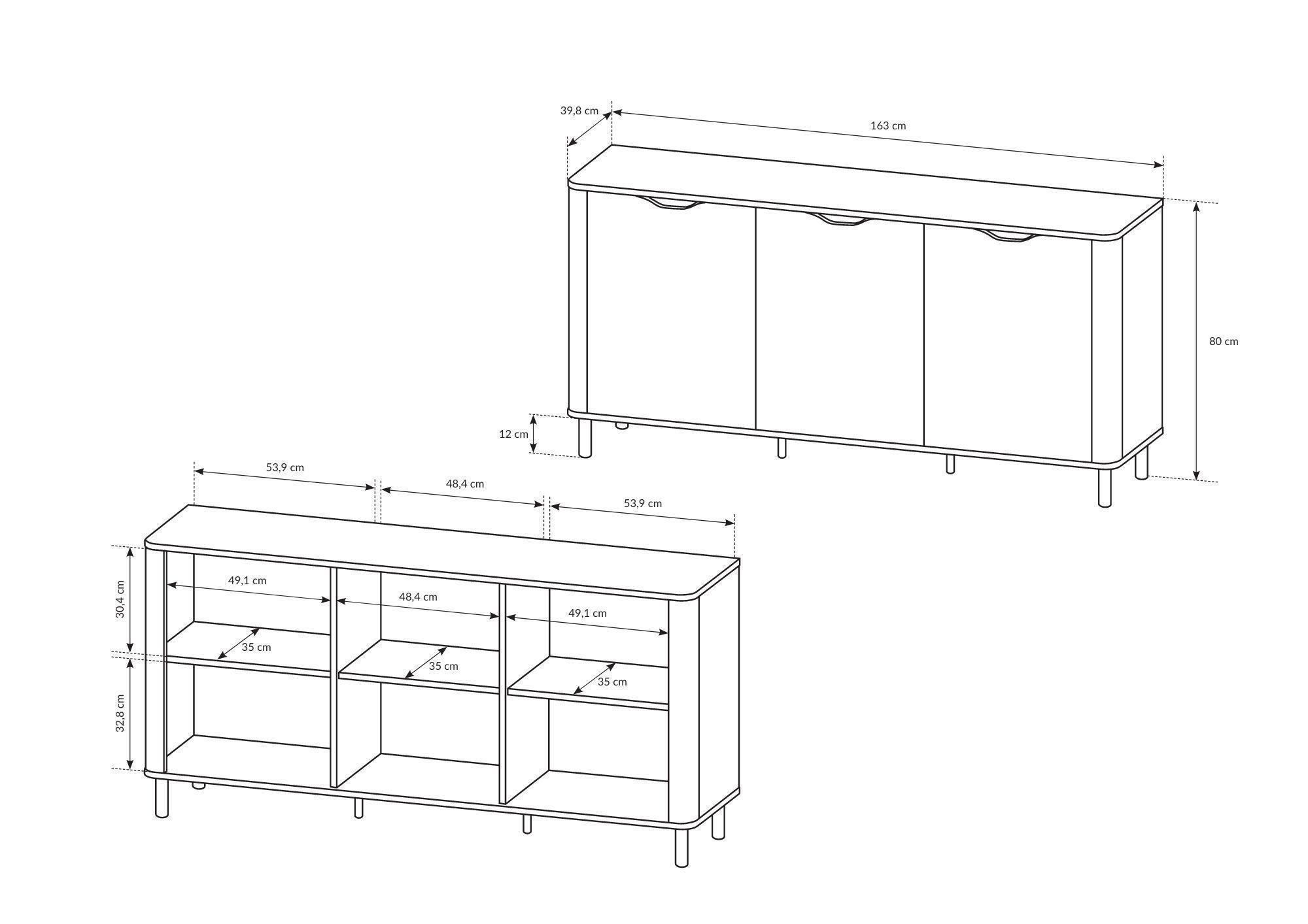 Furnlux Kommode SANTI - Beige - 163 x 40 x 80 cm - Stil: Modern