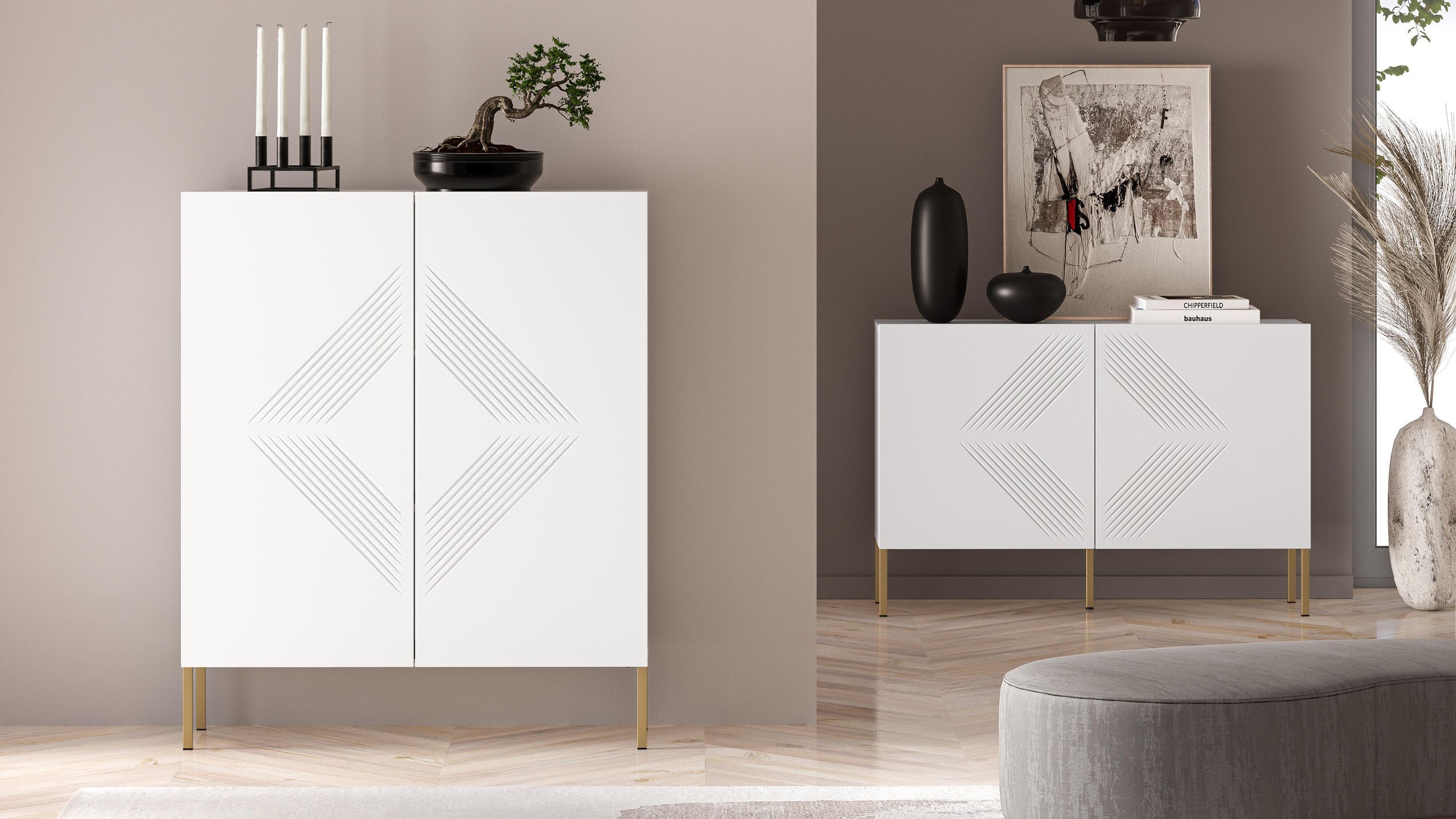 Furnlux Sideboard Clearing Weiß & Gold 100cm