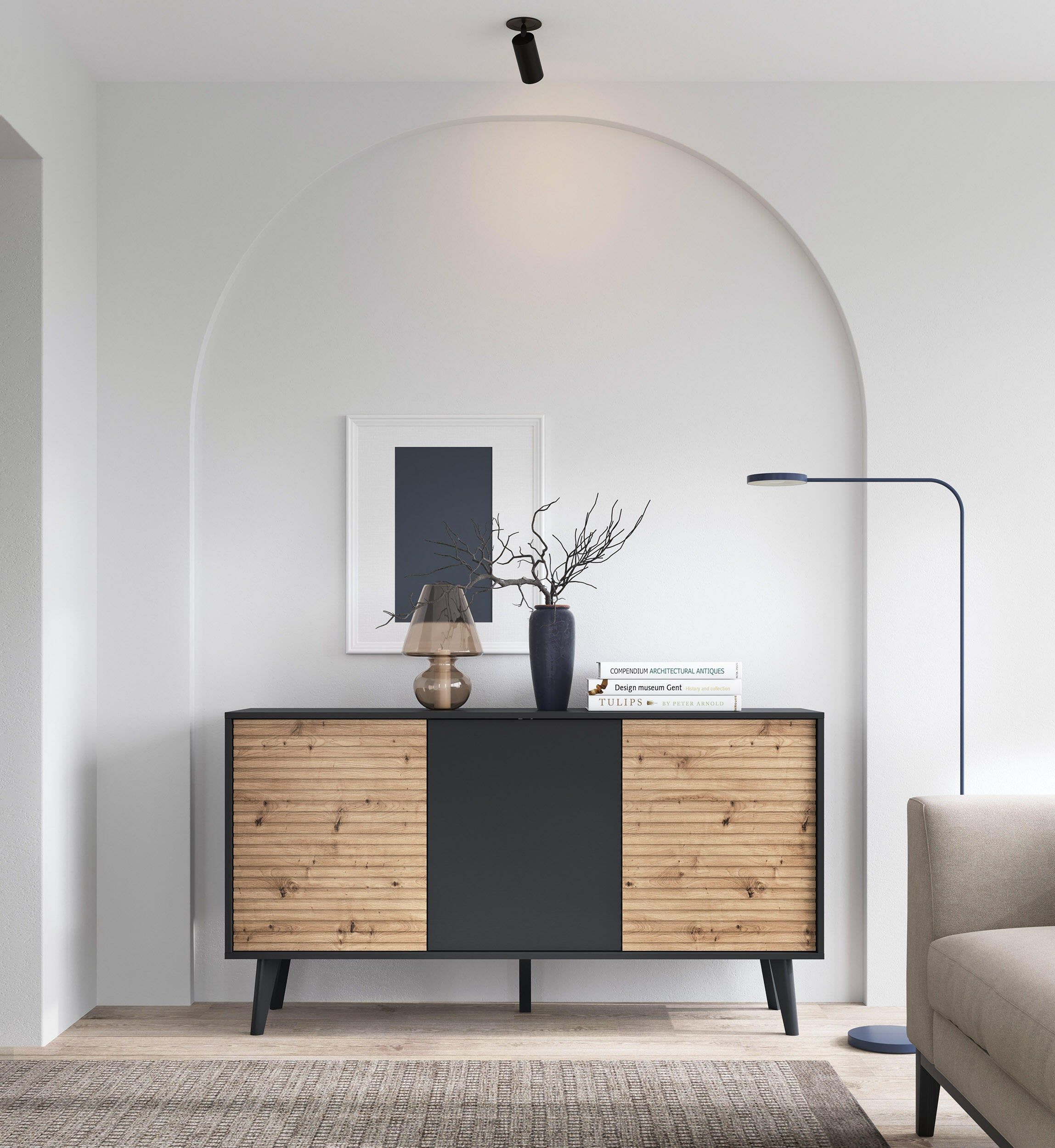 Furnlux Sideboard Willow Schwarz & Beige 154cm