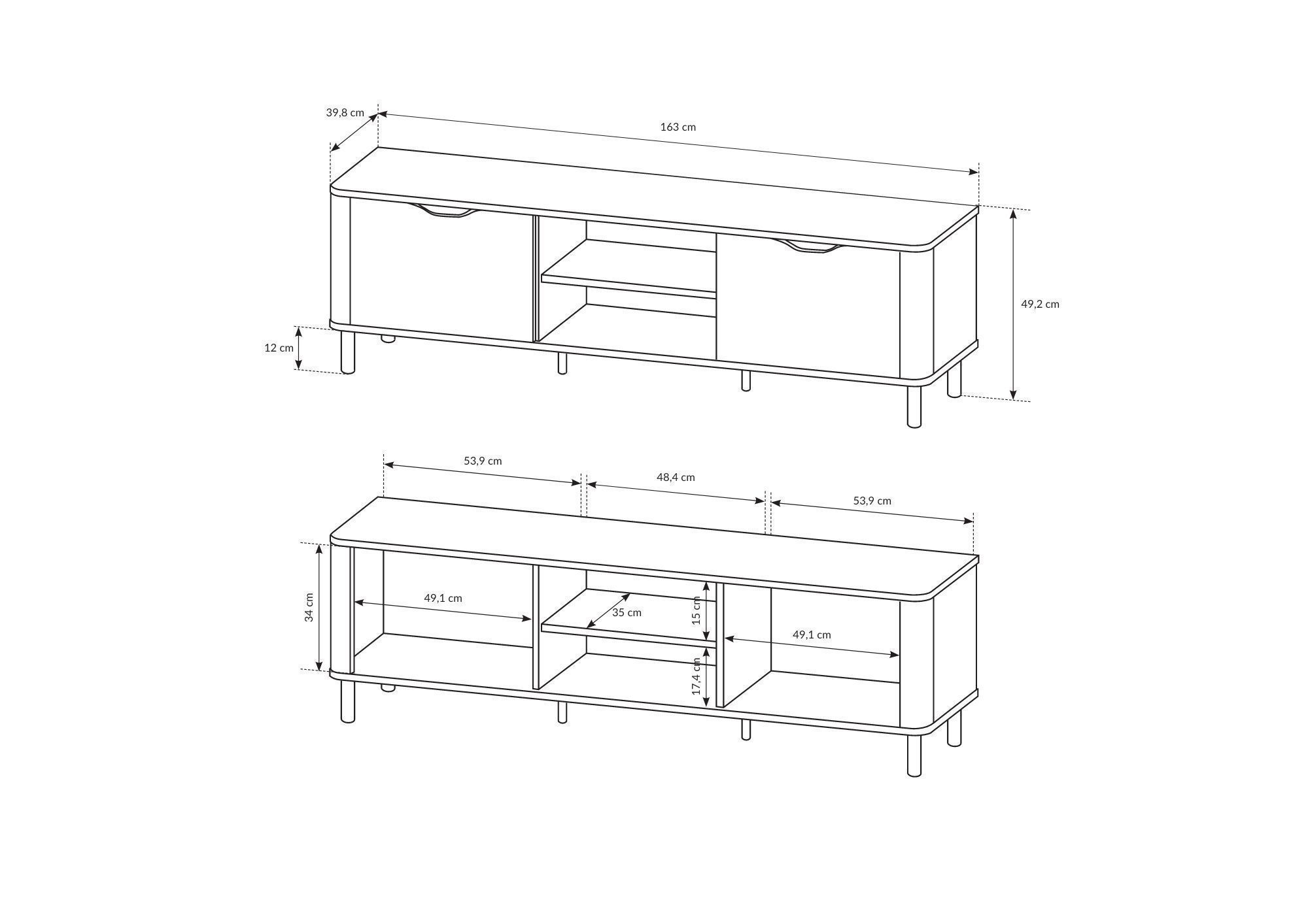 • TV Schrank AKORD 140 cm Erle B140 x H55 x T40 cm