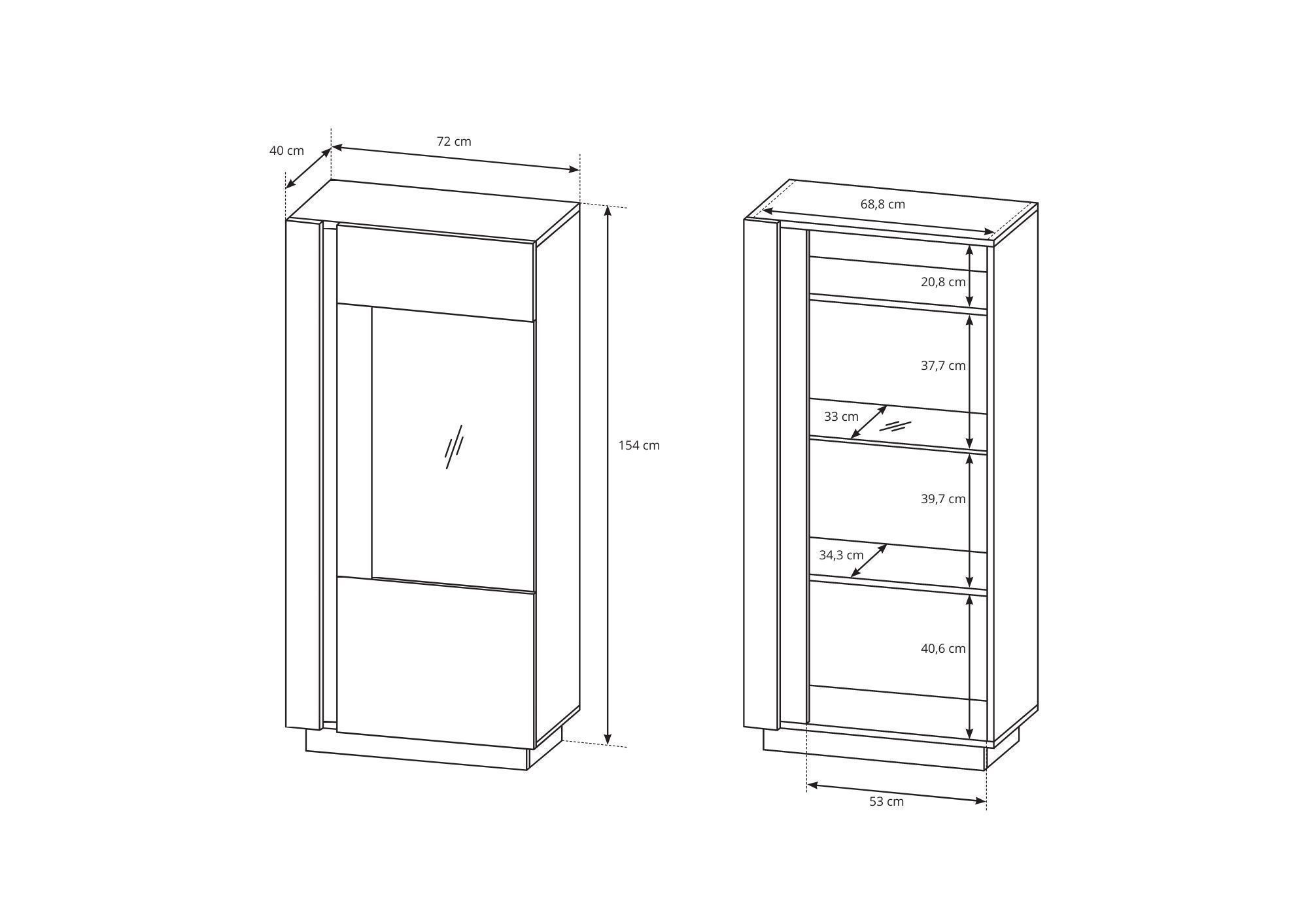 • Furnlux Vitrinenschrank ARCO - Weiß - 72 x 40 x 154 cm - Stil: Modern / LED