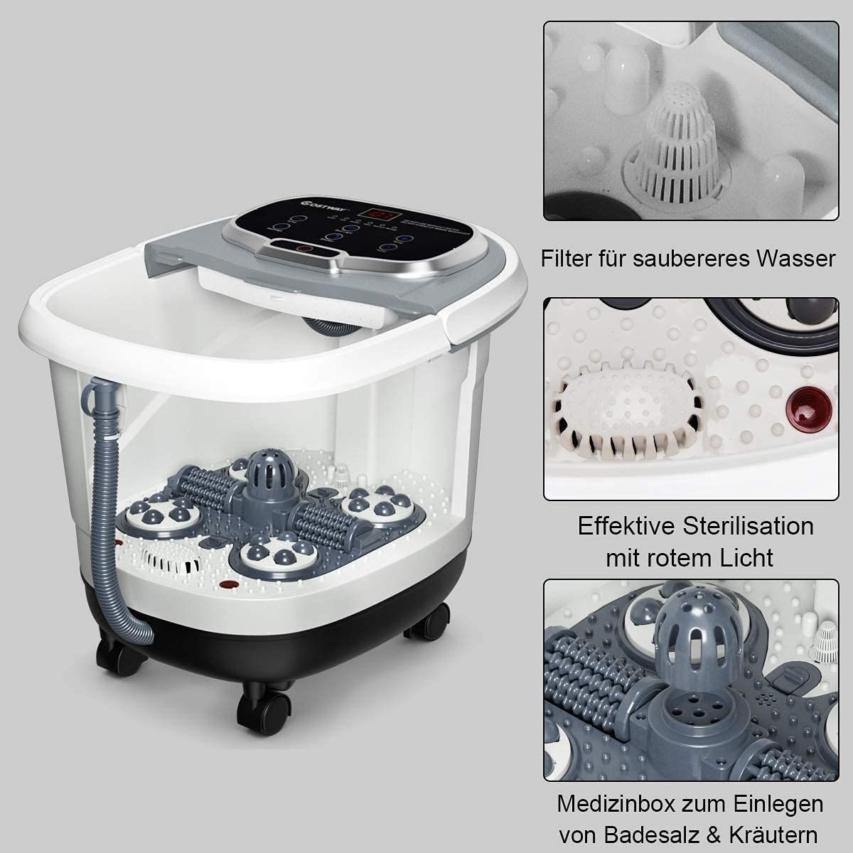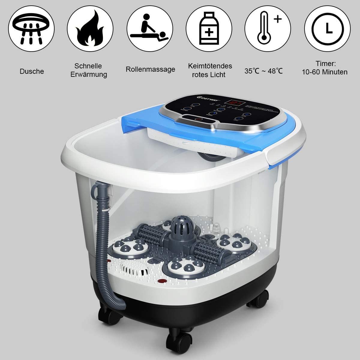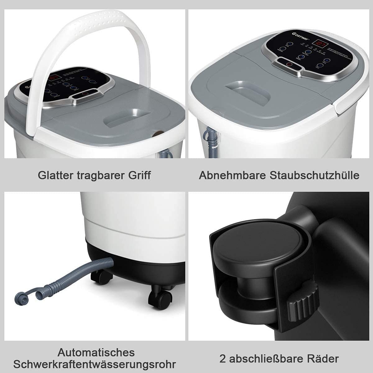 Fußbad Massagegerät mit Rollen, Elektrische Fußbadewanne 10-60min Timer, 500W