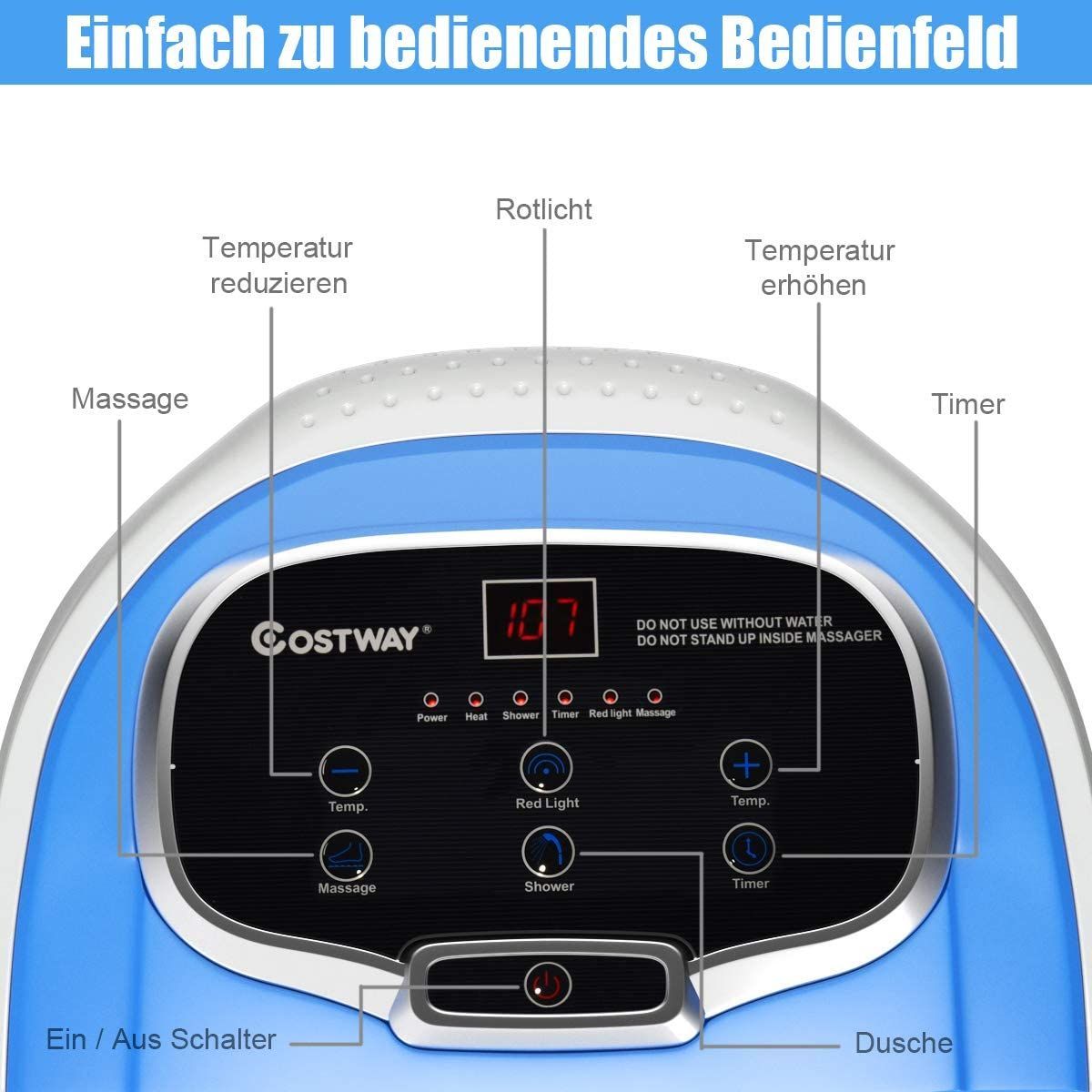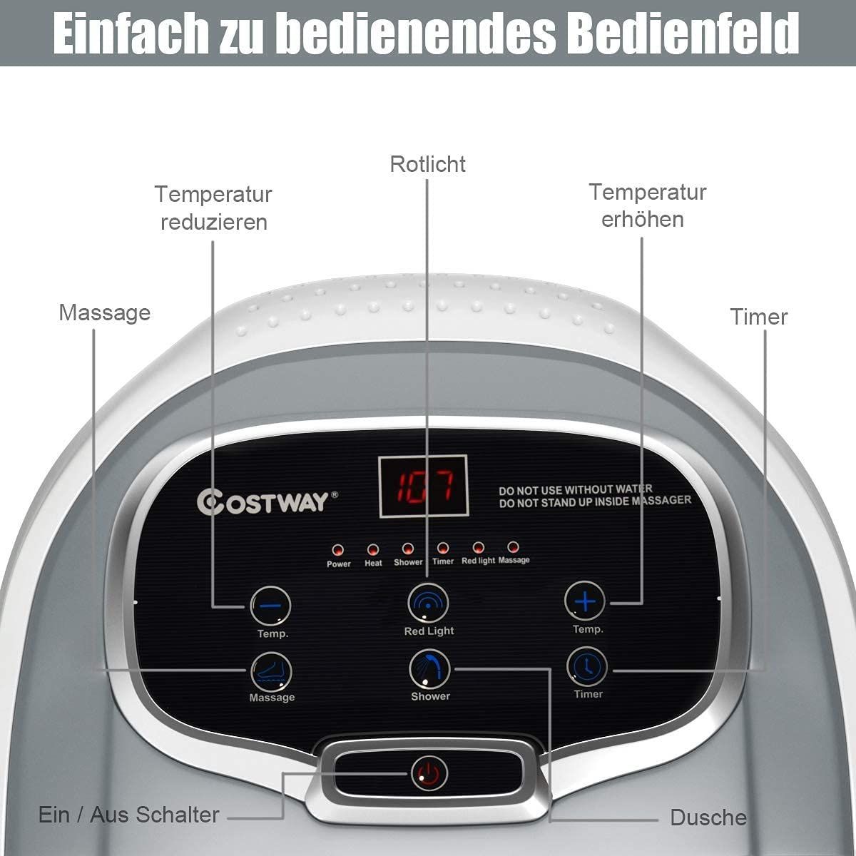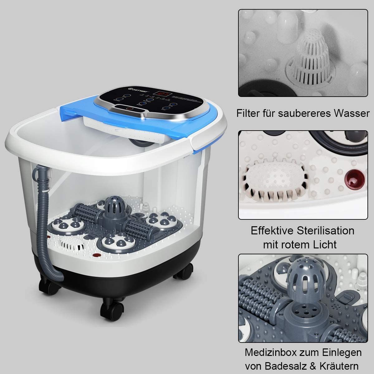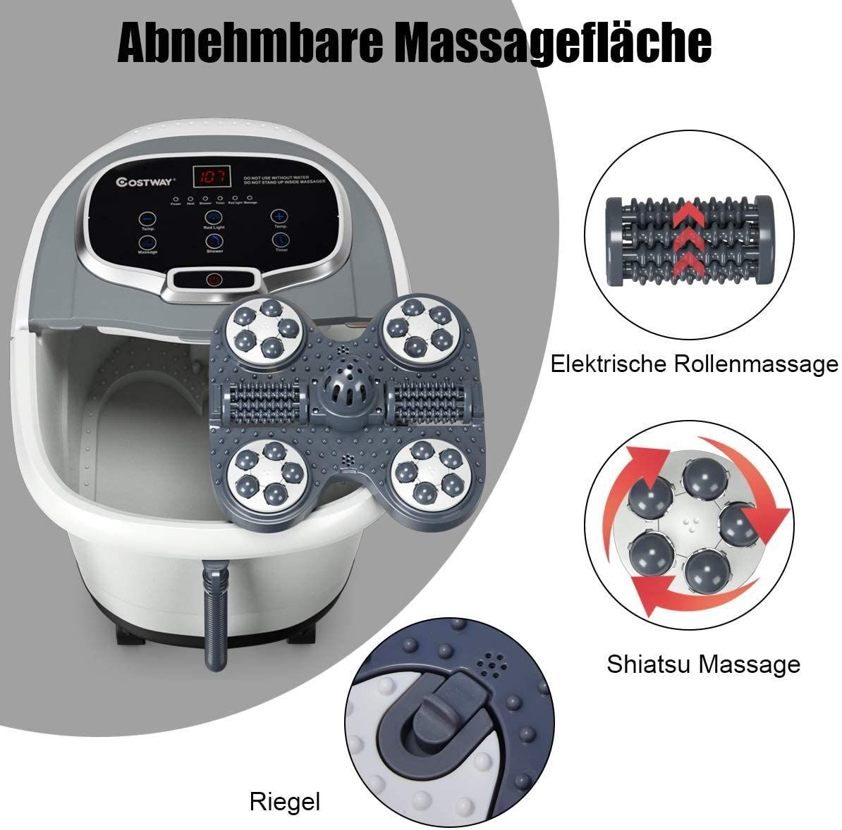 Fußbad Massagegerät mit Rollen, Elektrische Fußbadewanne 10-60min Timer, 500W