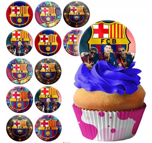 Fußball FC Barcelona Essbar 12 Muffin Zuckermasse Tortenbild Tortenaufleger p01
