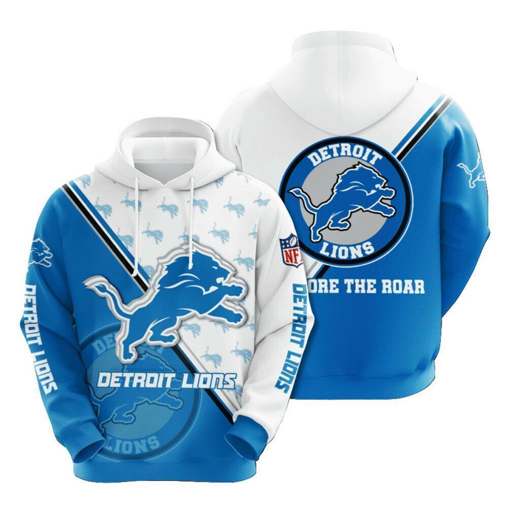 Fußball Herren 3D Sweatshirt Detroit Lions Hoodie Kapuzenpullover Weiß-Blau