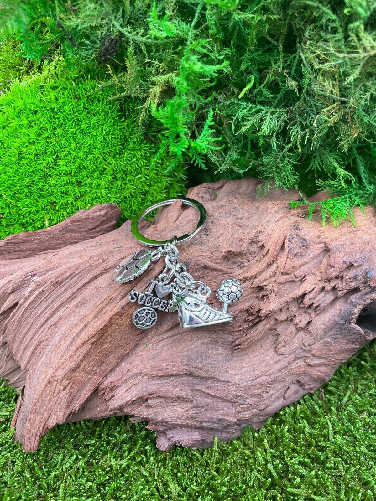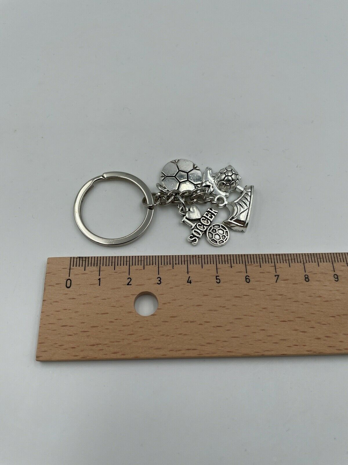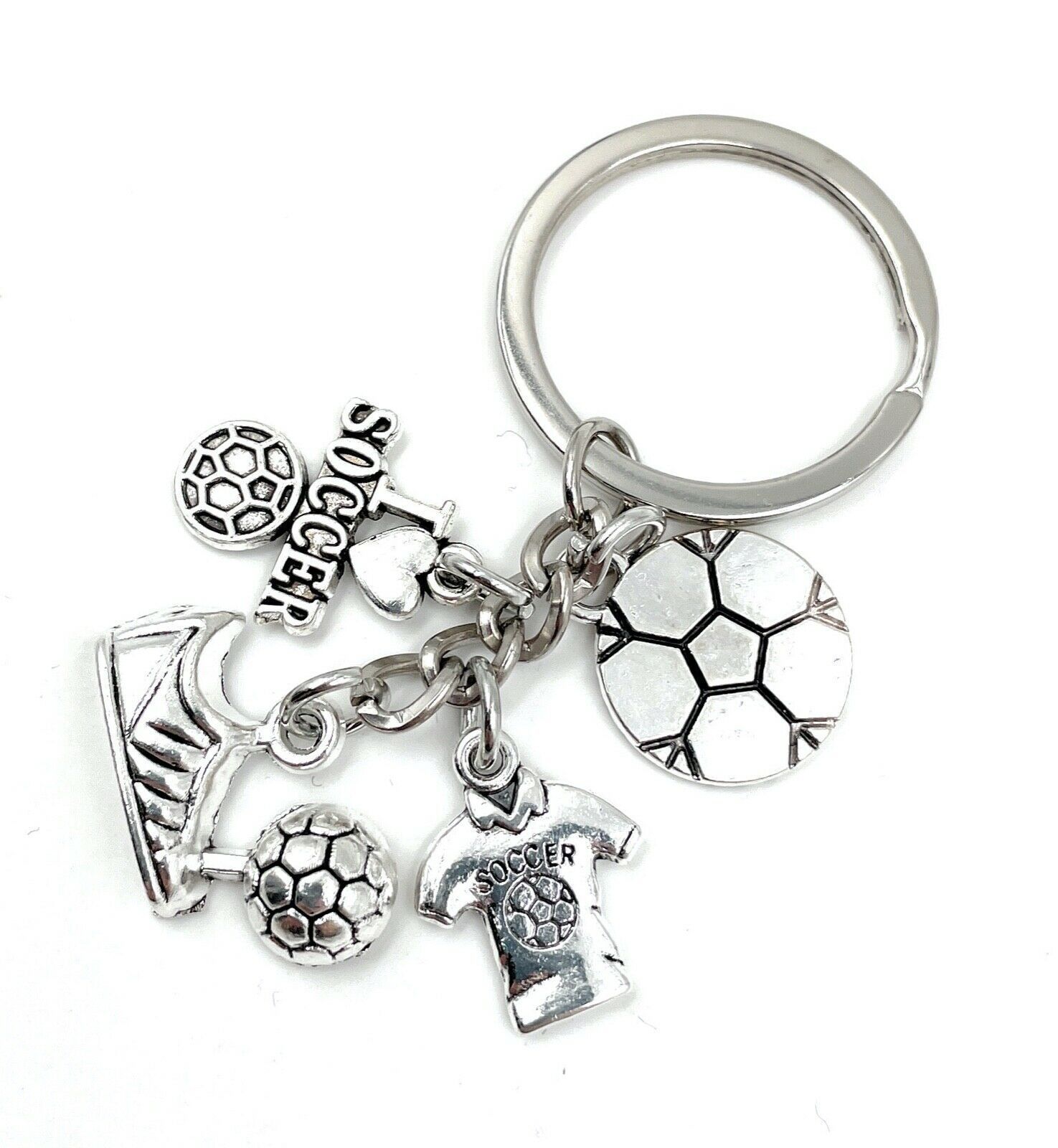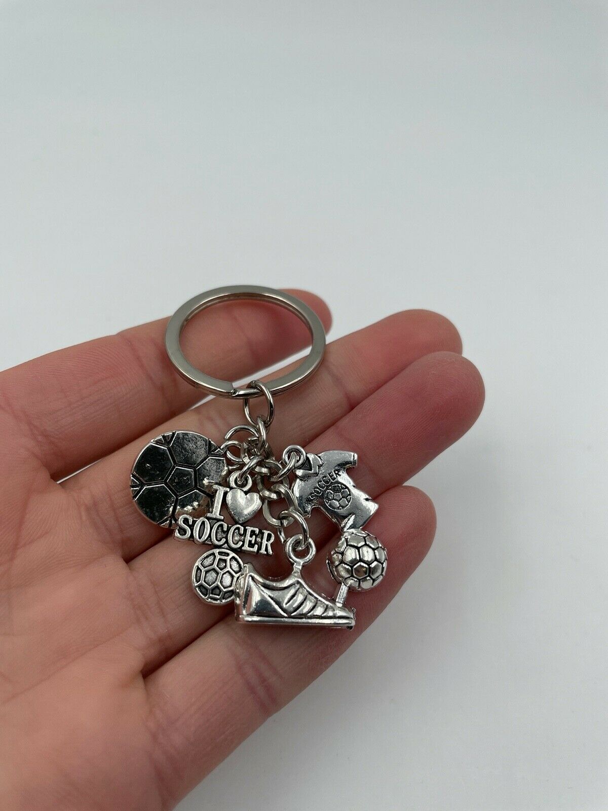 Fußball I love Soccer Schuh und Ball Schlüsselanhänger aus Metall Glücksbringer