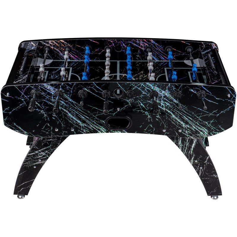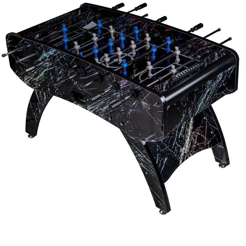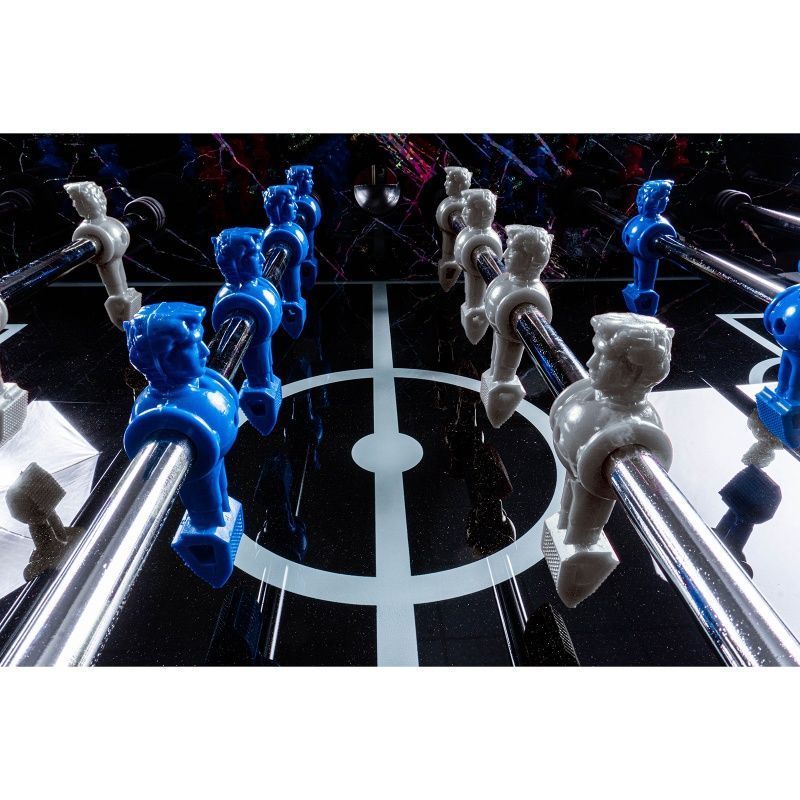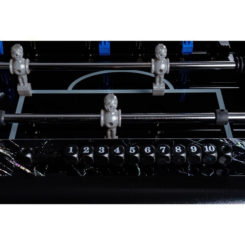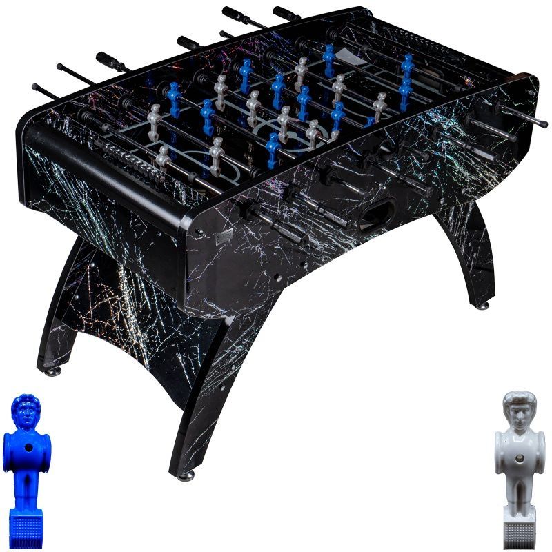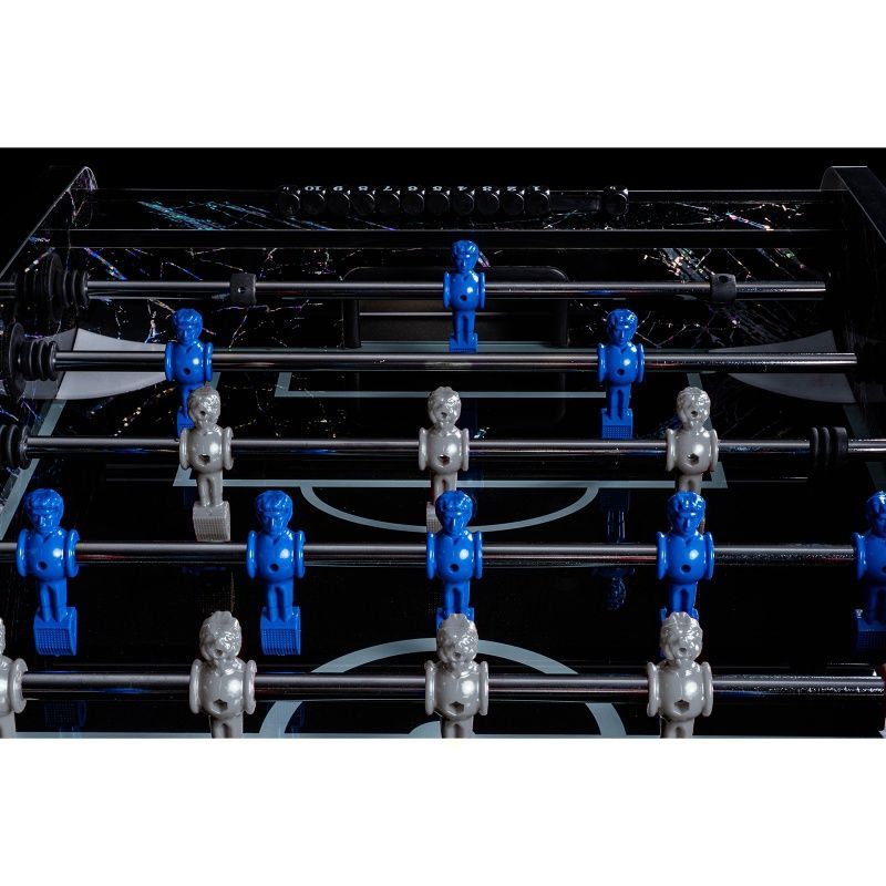 Fußball Tischkicker Premium Schwarz Glasspielfeld Figuren Blau Grau 80kg