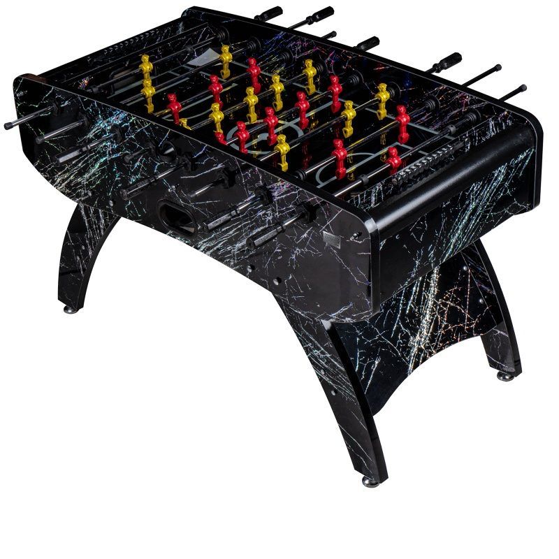 Fußball Tischkicker Premium Schwarz Glasspielfeld Figuren Gelb Rot 80kg