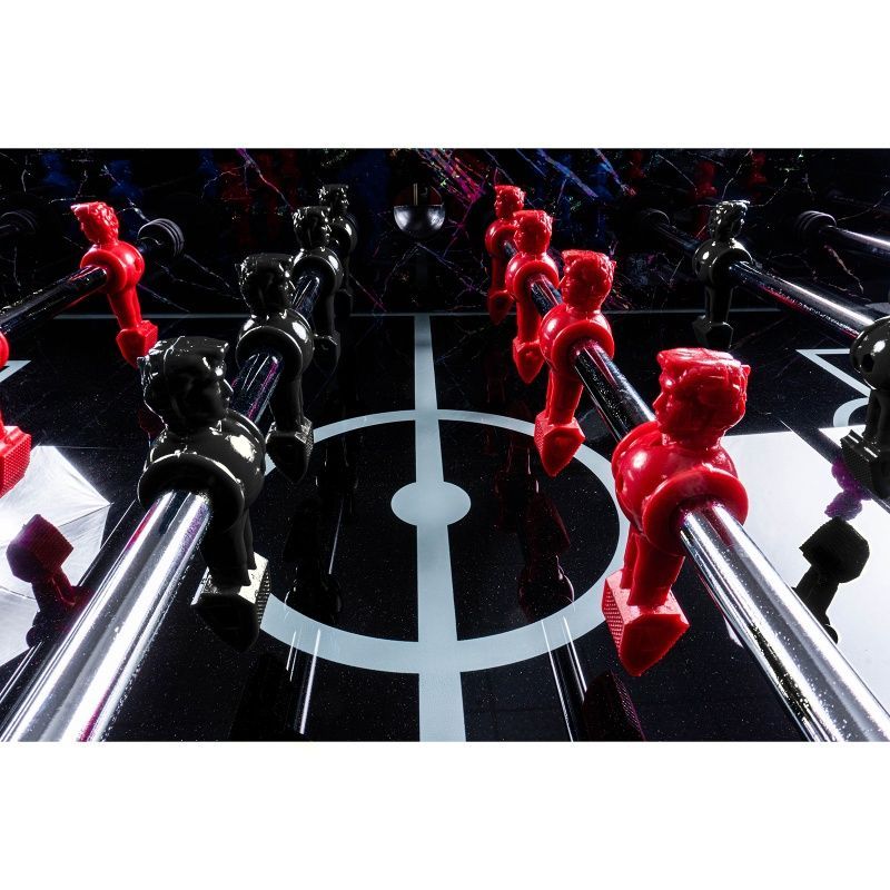 Fußball Tischkicker Premium Schwarz Glasspielfeld Figuren Schwarz Rot 80kg