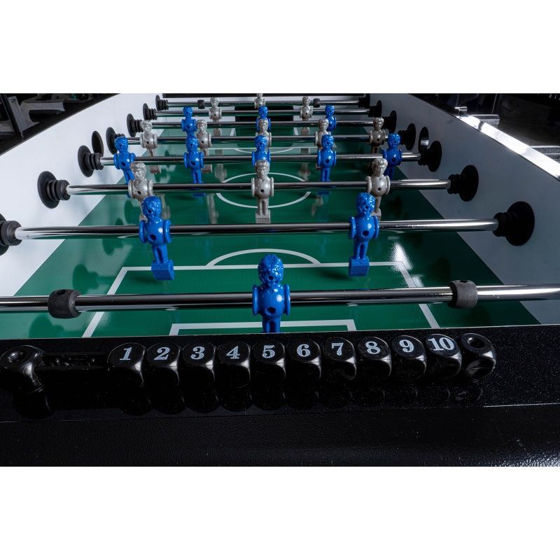 Fußball Tischkicker Schwarz Metallic grünes Feld Figuren Blau Grau 80kg