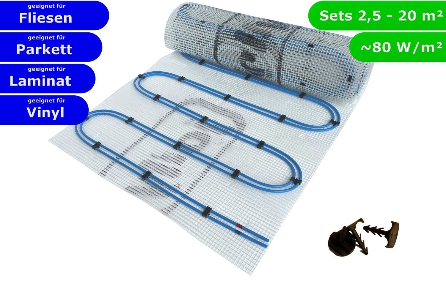 Fußbodenheizung Wasser Set HoWaTech Duo Doppelrohr Heizmatte und Anschlußteile