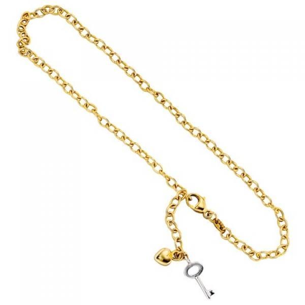 JOBO Fußkettchen Fußkette 585 Gold Gelbgold Weißgold bicolor 26 cm Karabiner