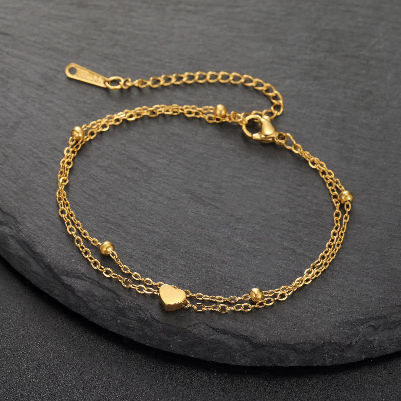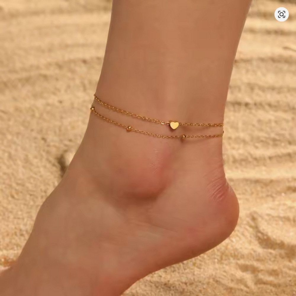 Fußkette Edelstahl Damen-Fußkettchen mit Herz-Anhänger in Gold - Optik