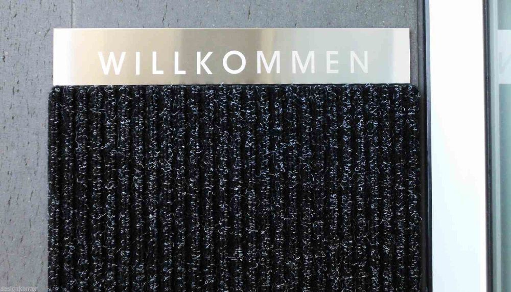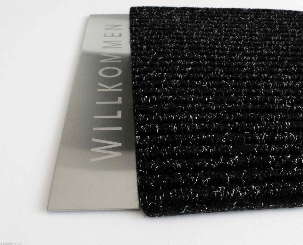 Artikel Fußmatte Türmatte 1057-02 anthrazit Edelstahlschild Willkommen Artikel-Design