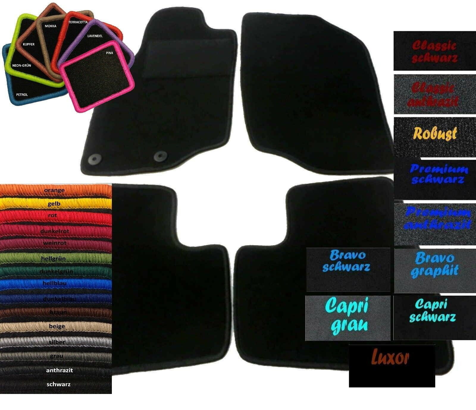Fußmatten passend für Mercedes MB W 203 S 203 C Klasse Bj 2000 bis 2007 6712 4-teiliger Passformsatz inkl. 2 Befestigungen in Fahrermatte, inkl. textiler Trittschutz auf der Fahrerseite (Hackenschutz) Modell: C-Klasse Typ: W 203 - Limousine, S 203 - T-Modell / Kombi Qualität: frei wählbar Umrandung/ Kettelfarbe: frei wählbar