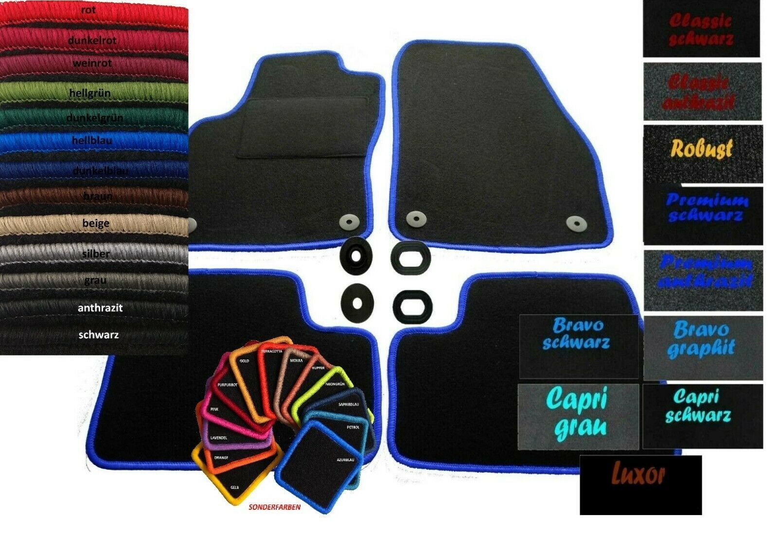Classic schwarz, Classic anthrazit, Robust, Premium schwarz, Premium anthrazit, Capri schwarz, Capri grau, Luxor schwarz