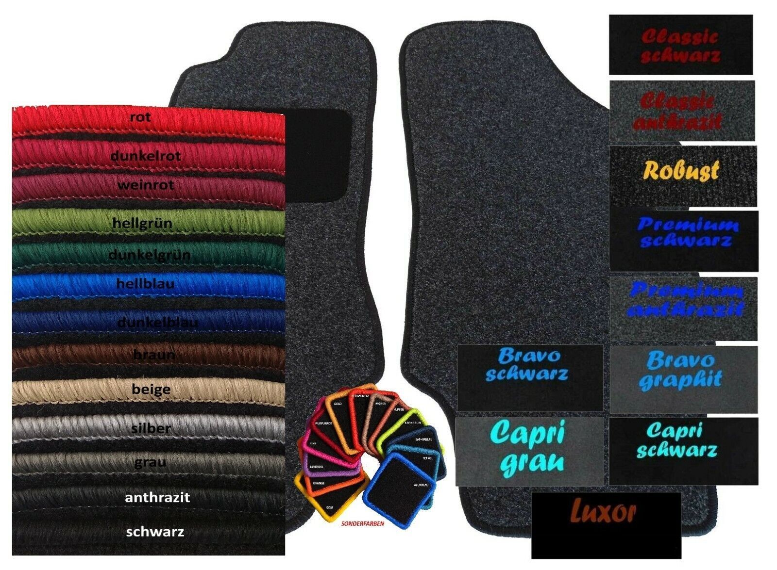 Fußmatten Velours passend für MB Smart Roadstar 452 Bj 2003 bis 2005 6746 - 2-teiliger Passformsatz - inkl. textiler Trittschutz auf der Fahrerseite (Hackenschutz) Marke: Mercedes Modell: Smart Typ: Roadstar 452 Qualität: frei wählbar Umrandung/ Kettelfarbe: frei wählbar