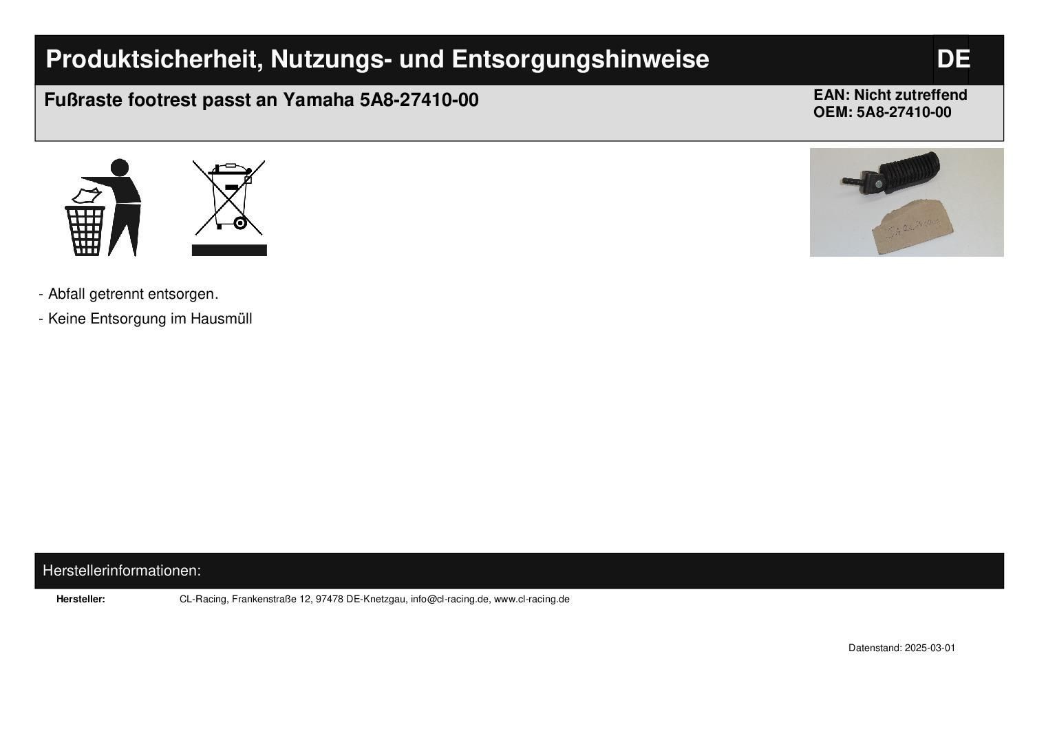 Fußraste footrest passt an Yamaha 5A8-27410-00