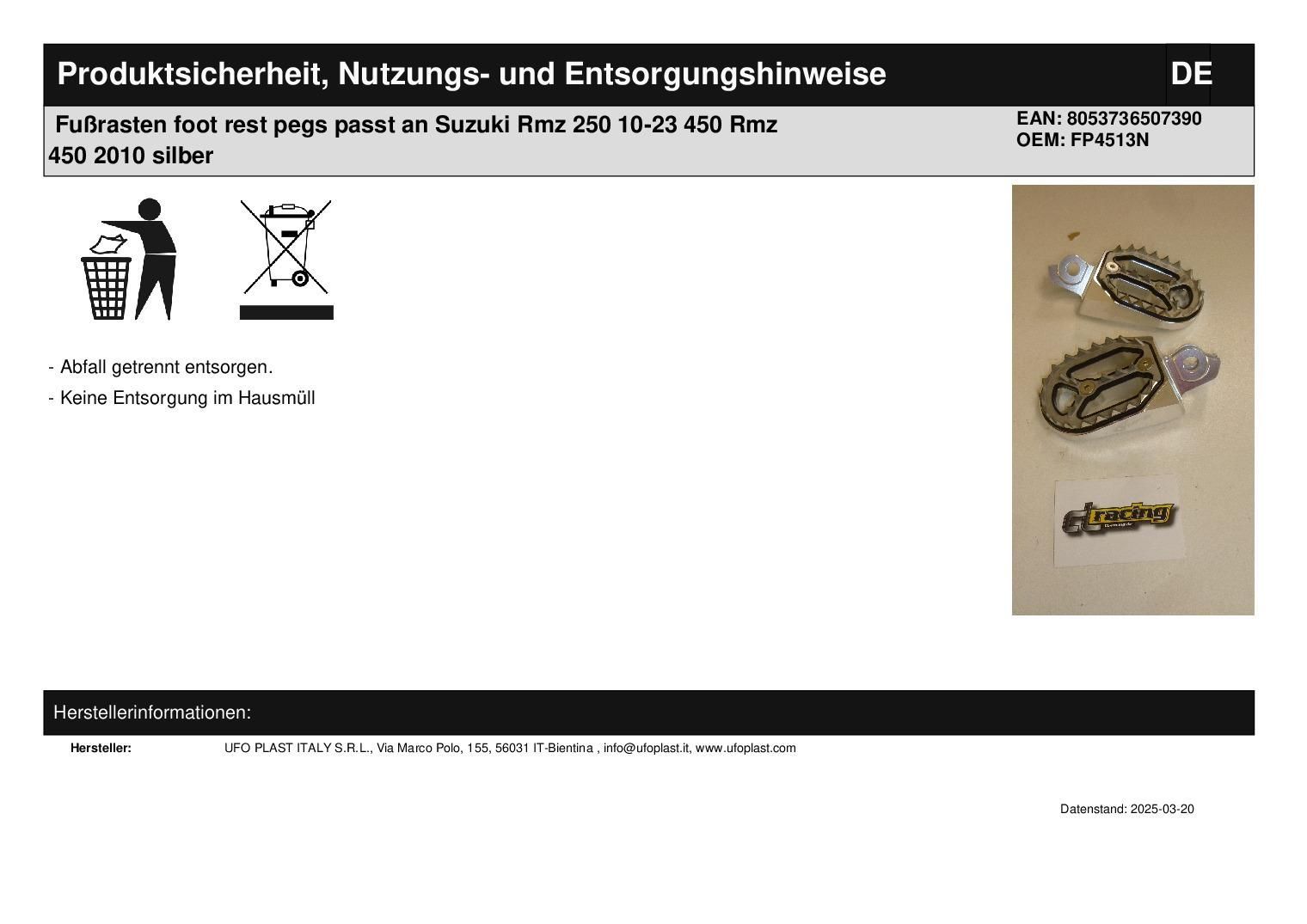 Fußrasten foot rest pegs passt an Suzuki Rmz 250 10-23 450 Rmz 450 2010 silber