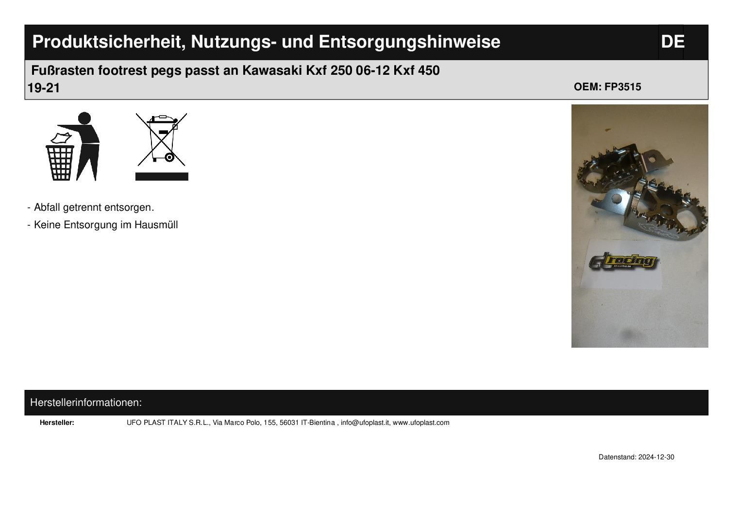 Fußrasten footrest pegs passt an Kawasaki Kxf 250 06-12 Kxf 450 19-21