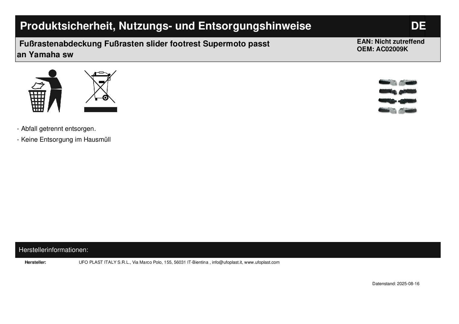 Fußrastenabdeckung Fußrasten slider footrest Supermoto passt an Yamaha sw