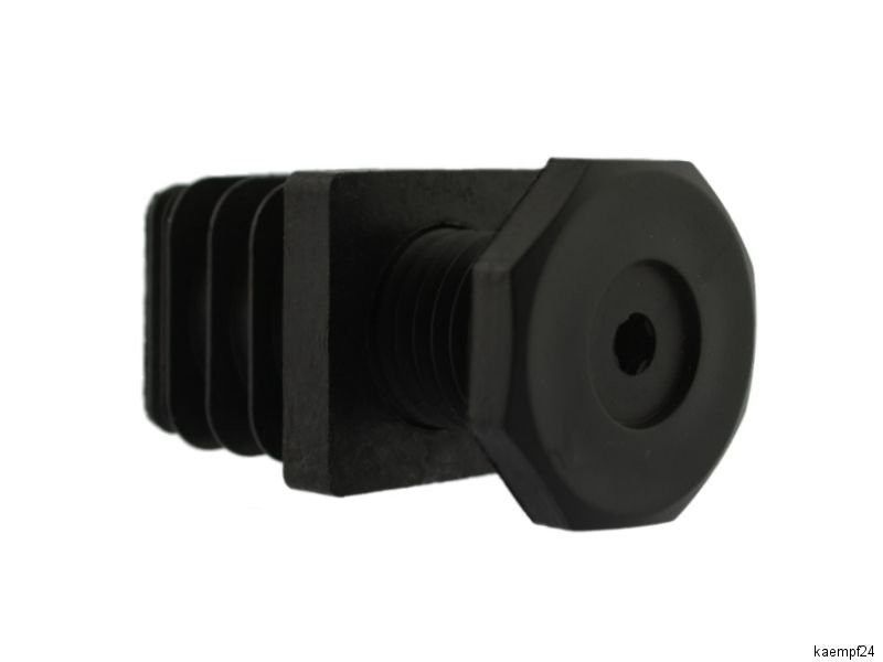 1 x Fussstopfen 25 x 25 mm mit Stellfuß schwarz Ausführung: Sehr stabiler Lamellen Fussstopfen aus robustem Kunststoff, in Farbe schwarz für Metallrohr Vierkant 25 x 25 mm ( Rohraußenmaß ! ) incl. montiertem Stellfuß. Der Stopfen paßt sich durch seine Lamellenstruktur an alle gängigen Rohrwandstärke